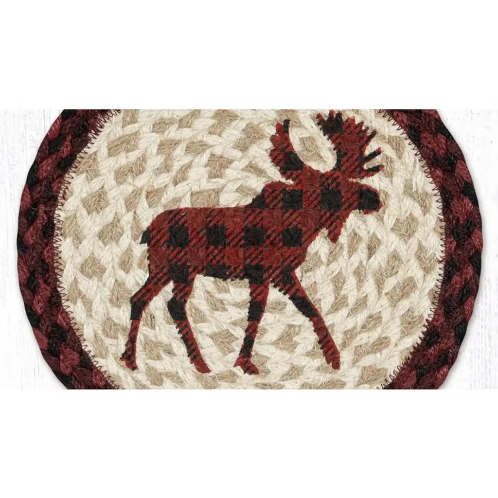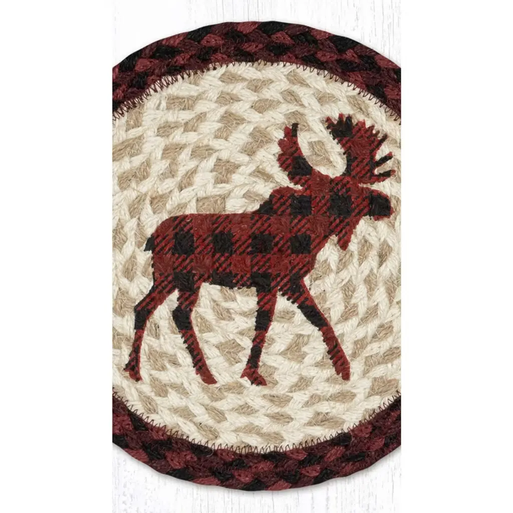 Earth Rugs Country Rustic Red Plaid Moose Printed Round Trivet – 10" Hot Plate Mat