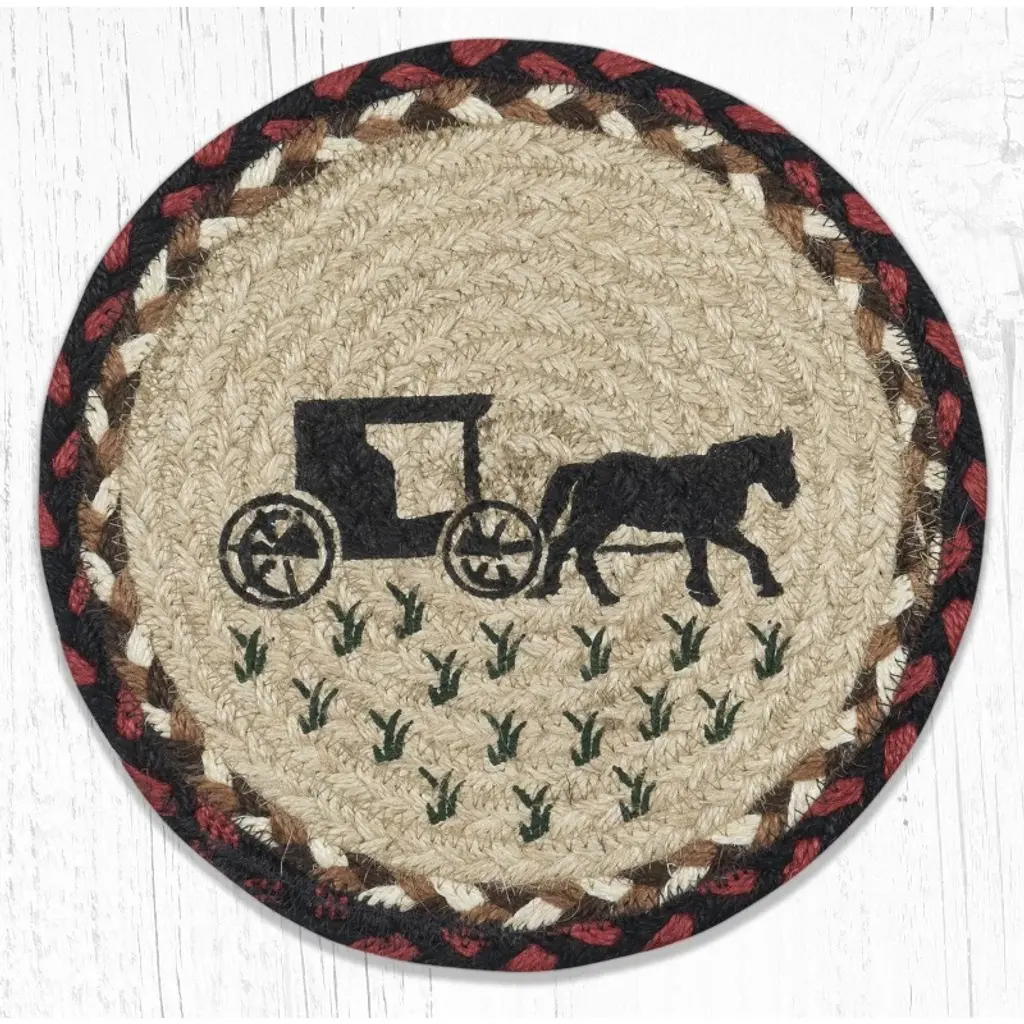 Capture the charm of rural America with the Earth Rugs Covered Bridge Printed Coaster. This 5" x 5" square coaster showcases a picturesque covered bridge scene, printed on a naturally braided jute surface. Its warm, earthy tones and nostalgic countryside imagery make it a cozy accent for rustic, farmhouse, and vintage-inspired décor. Whether you're setting the table for everyday use or decorating for fall and winter gatherings, this coaster adds both functional protection and scenic beauty. Lightweight and flexible, it stores easily and fits seamlessly into seasonal or year-round displays. Key Features: Material: 100% natural braided jute for eco-friendly durability Color Theme: Earth tones with a rustic countryside bridge print Design: Printed covered bridge scene evokes classic rural landscapes Dimensions: 5" H × 5" W Style Match: Perfect for farmhouse, country, vintage, and seasonal decor themes Care Instructions: Spot clean only to maintain print quality and jute texture