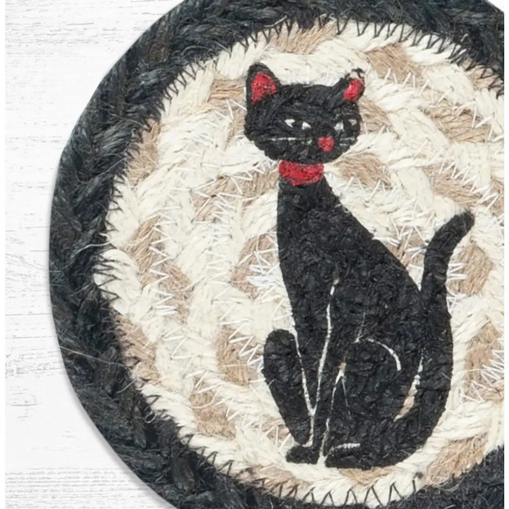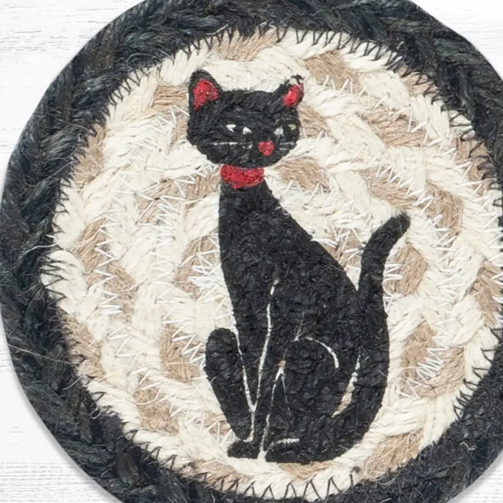 Earth Rugs Crazy Cat Printed Jute Coaster 5"x5" Round Rustic Handcrafted Accent Add fun and function to your tabletop with the Earth Rugs Crazy Cat Printed Round Jute Coaster. Featuring a whimsical hand-stenciled design by artist Harry W. Smith, this piece brings personality and rustic charm to any room. Hand-braided from 100% natural jute, this coaster is not only sustainable but also sturdy enough to protect your furniture from scratches, heat, and spills. Its 5" round size makes it the perfect companion for coffee mugs, glasses, or small bowls. Ideal for everyday use or as a thoughtful gift for cat lovers, this coaster blends art, sustainability, and rustic style into one charming accessory. Key Features : Protects Surfaces: Prevents scratches, stains, and heat marks. Playful Style: Fun “Crazy Cat” artwork adds charm to any setting. Eco-Friendly Choice: Made from 100% natural, sustainable jute. Lightweight & Handy: Easy to use, move, and store. Great Gift: Perfect for cat lovers and rustic décor fans.