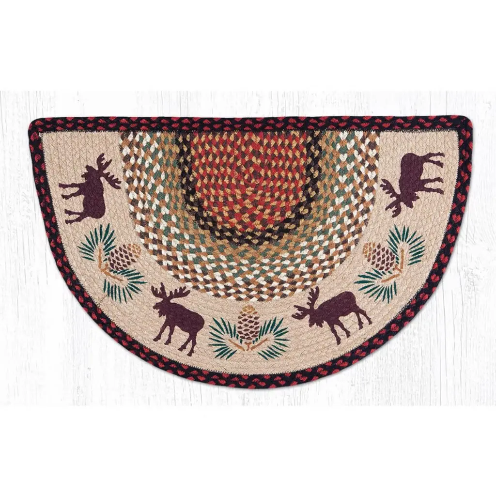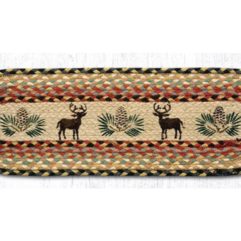 Earth Rugs Deer & Pinecone Oval Stair Tread 27"x8.25" – Rustic Lodge Cabin Style Measuring 27"x8.25", this oval stair tread safeguards stairs from scratches, scuffs, and heavy foot traffic while providing extra traction. Crafted from braided jute, it is both sturdy and stylish. Spot cleaning ensures easy upkeep, making it a practical addition to rustic-inspired interiors. Key Features: Bring rustic woodland charm with deer and pinecone design. Protect stairs from daily wear while adding lodge, cabin, or farmhouse decor. Durable braided jute construction ensures long-lasting indoor use. Sized perfectly at 27"x8.25" to fit most stair steps. Enhance rustic lodge or cabin style with nature-inspired accents. Easy care – spot clean with mild soap and water for hassle-free maintenance.