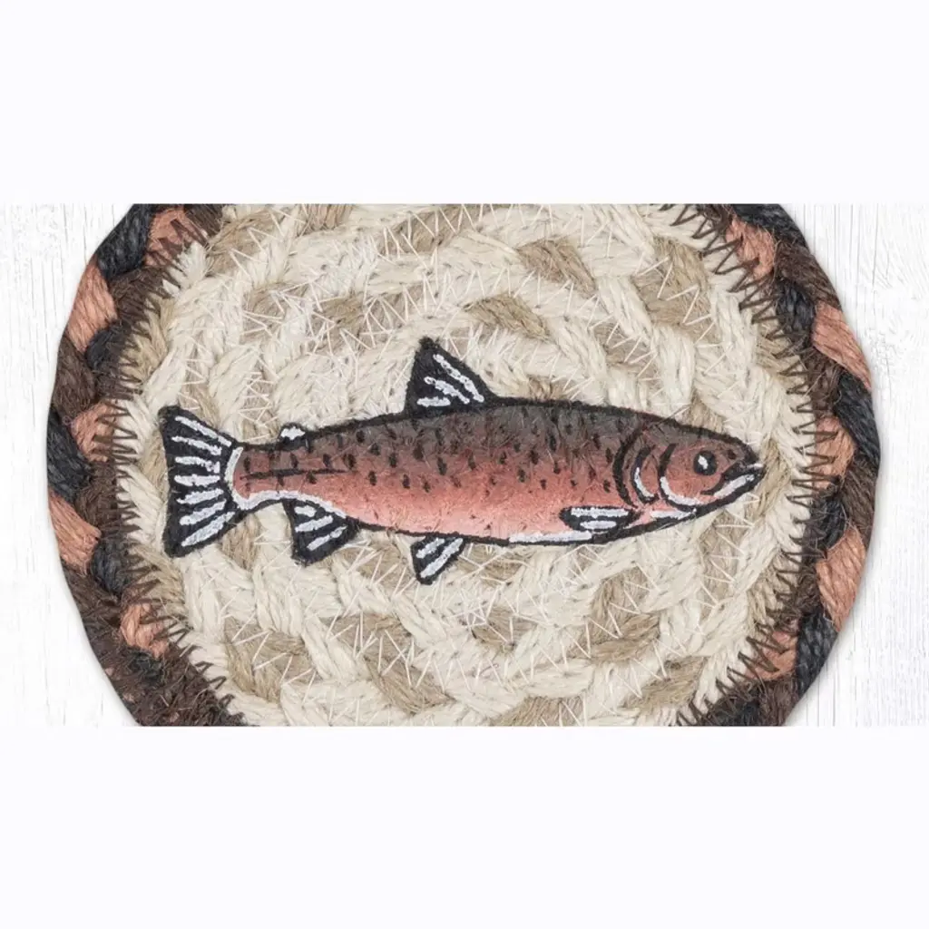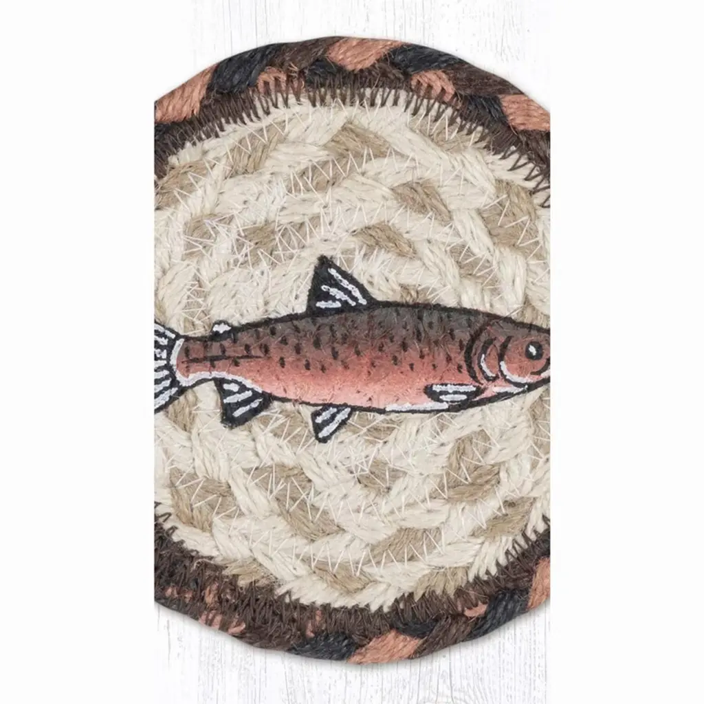 Earth Rugs Durable Pink Salmon Coaster – 5"x5" Rustic Fishing Cabin Accent