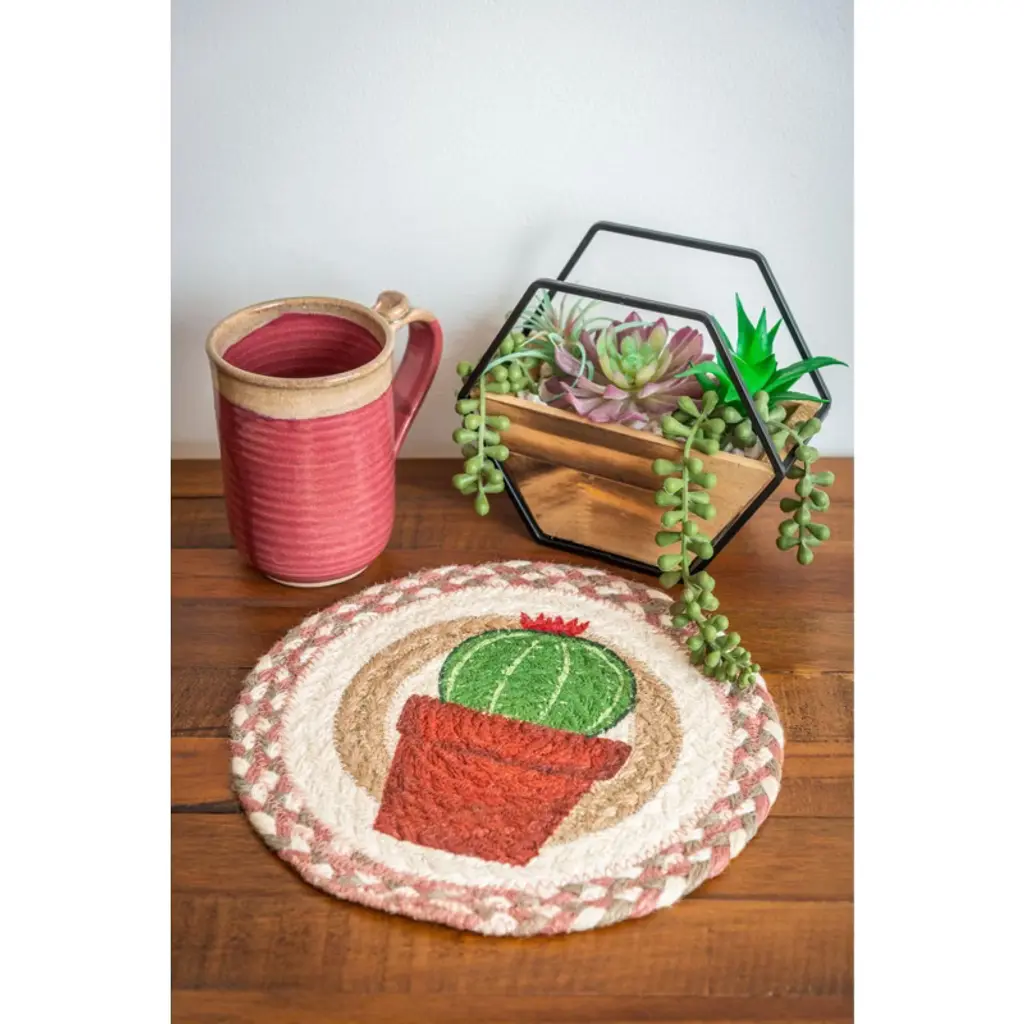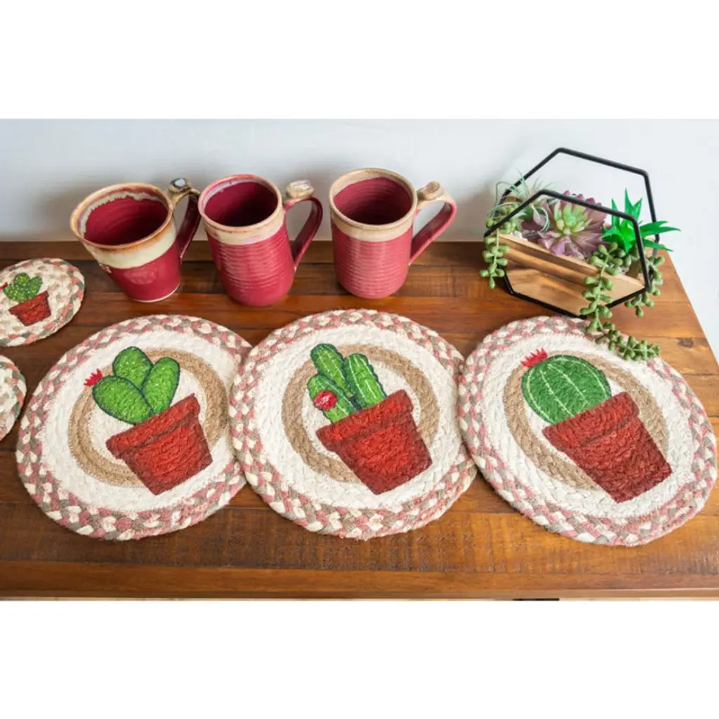 Earth Rugs Eco Chic Cactus Decor – Round Jute Trivet For Rustic Or Boho Homes