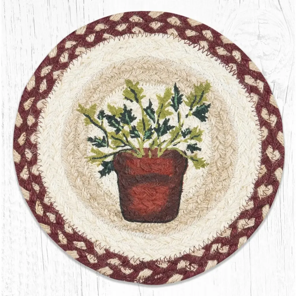 Bring the charm of the desert into your home with the Cacti 3 Round Jute Trivet, a hand-stenciled original by artist Suzanne Pienta. Crafted from 100% natural braided jute, this 10"x10" trivet showcases a detailed cactus trio in soothing earthy green tones, ideal for Southwestern, rustic, or botanical-themed spaces. Whether protecting your surfaces from heat or hung on a wall as an accent, this round piece (measuring 10 inches in diameter and approx. 0.17 inches thick) adds both purpose and personality to your décor. A perfect mix of functionality and artisan craftsmanship. Dual-Purpose Design: Use as a heat-resistant trivet or a decorative wall piece (10" H × 10" W × 0.17" D) Artist-Made: Each cactus motif is individually hand-stenciled for one-of-a-kind character Eco-Friendly Appeal: Jute is biodegradable, sustainable, and adds an earthy texture Stylish Utility: Great for kitchen counters, dining tables, or outdoor patio setups Perfect Gift Idea: A charming choice for housewarmings, cactus lovers, or rustic home enthusiasts