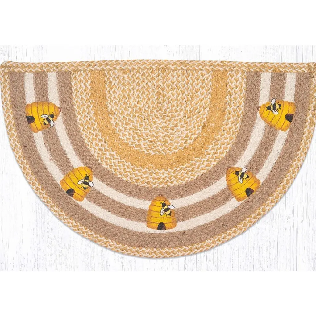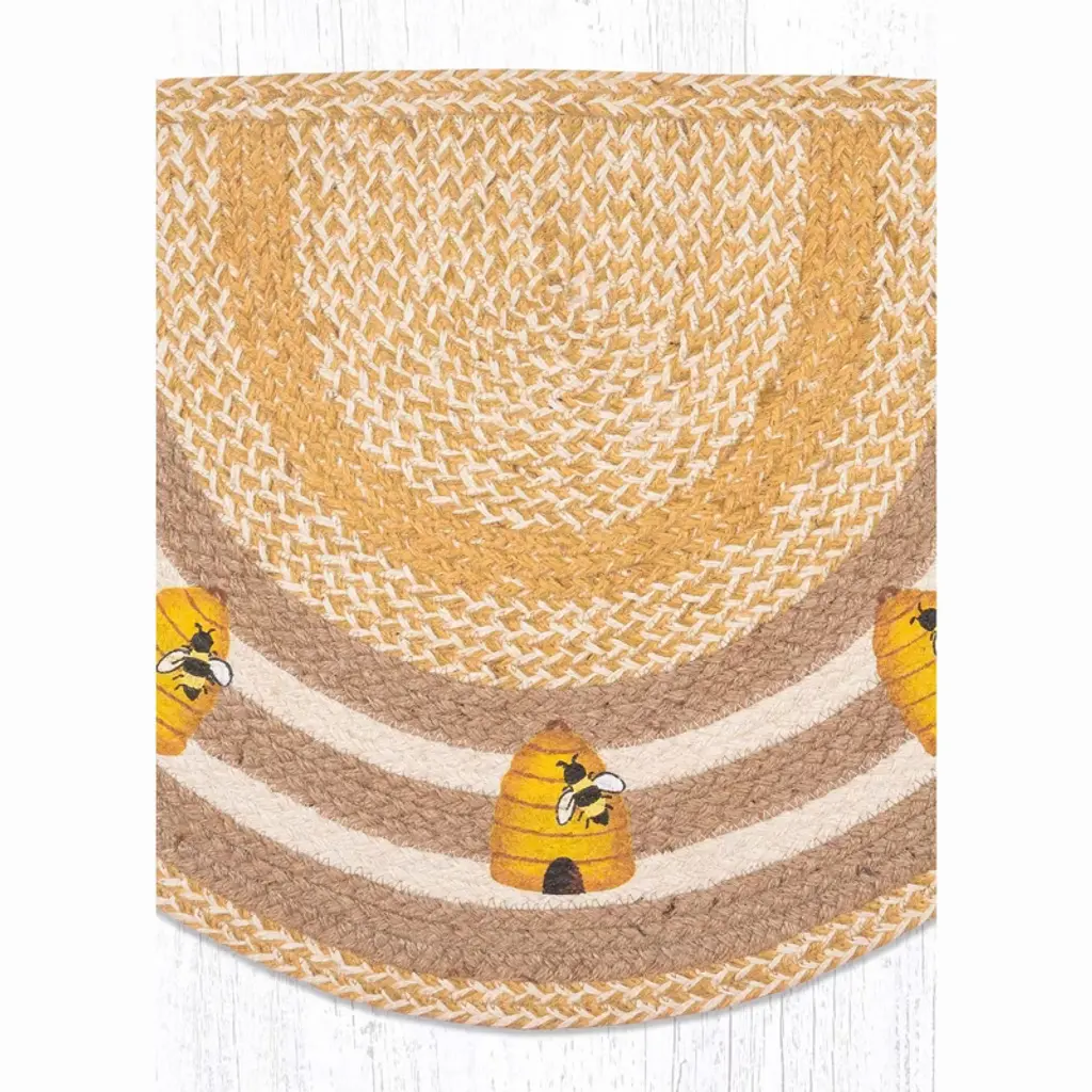 Earth Rugs Eco-Friendly Beehive Printed Jute Slice Stair Tread – 18"x29" Made from 100% natural jute, each rug is hand-braided and printed with care for lasting durability. Measuring 18"x29", the slice shape fits neatly at doors or under counters, offering a soft feel underfoot while protecting floors from daily wear. Earth Rugs is known for its commitment to sustainable materials and handcrafted artistry, making this piece as responsible as it is beautiful. Key Features: Enhance your entryway with a charming beehive print. Enjoy eco-friendly craftsmanship using natural jute fibers. Showcase a rustic farmhouse style with rich texture. Benefit from a durable braided design for long-lasting use. Protect floors while adding warm, welcoming style. Fit doorways and kitchen spaces with an 18"x29" slice shape. Maintain easily with spot cleaning and gentle care.
