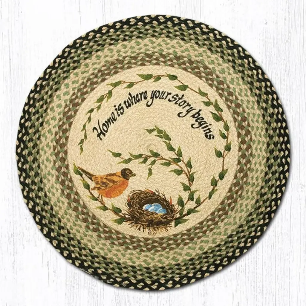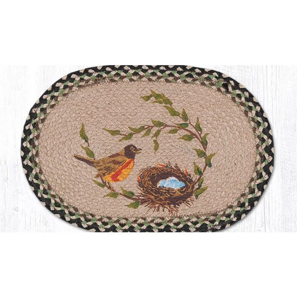 Earth Rugs Eco-Friendly Robins Nest Oval Placemat 13"x19" Rustic Kitchen Accent Bring the beauty of nature to your dining space with the Earth Rugs Robins Nest Oval Placemat (13"x19"). This placemat not only protects your table but also enhances it with warm, rustic charm inspired by a robin’s nest design. key features: Protects tabletops while adding rustic Robins Nest charm.Handcrafted with eco-friendly natural jute fibers for durability.Measures 13"x19" (33 x 48 cm), perfect for standard dining tables.Rustic farmhouse design complements lodge, cabin, or country kitchens.Lightweight and sturdy construction ensures everyday usability.Easy to maintain—spot clean to preserve vibrant colors.Doubles as both a functional placemat and decorative accent.