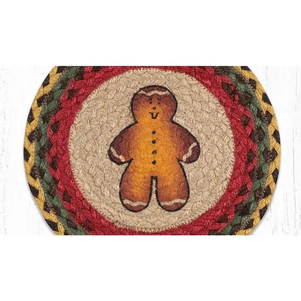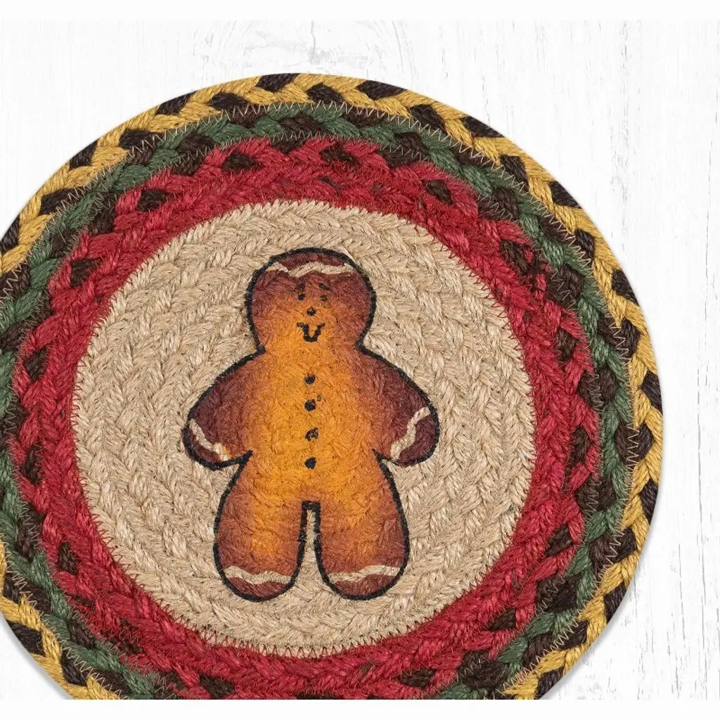 Earth Rugs Gingerbread Man Round Trivet – 10"x10" Braided Jute Accent With Festive Holiday Print
