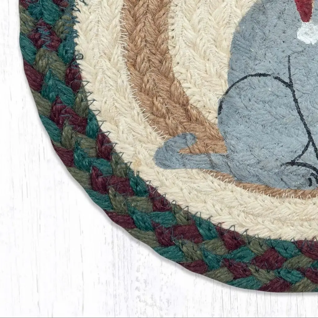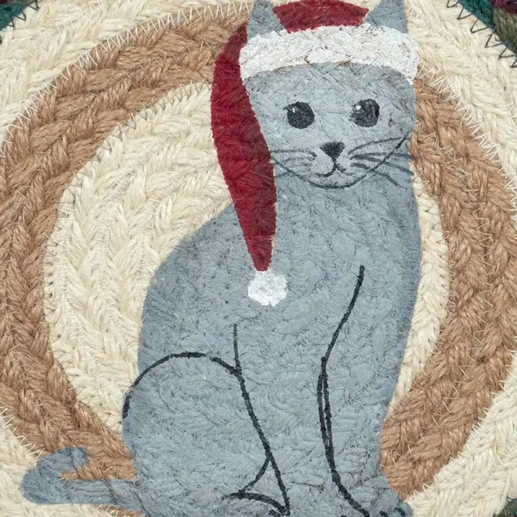 Earth Rugs Handmade Festive Trivet – Round Jute Mat With Santa Hat Cat Design