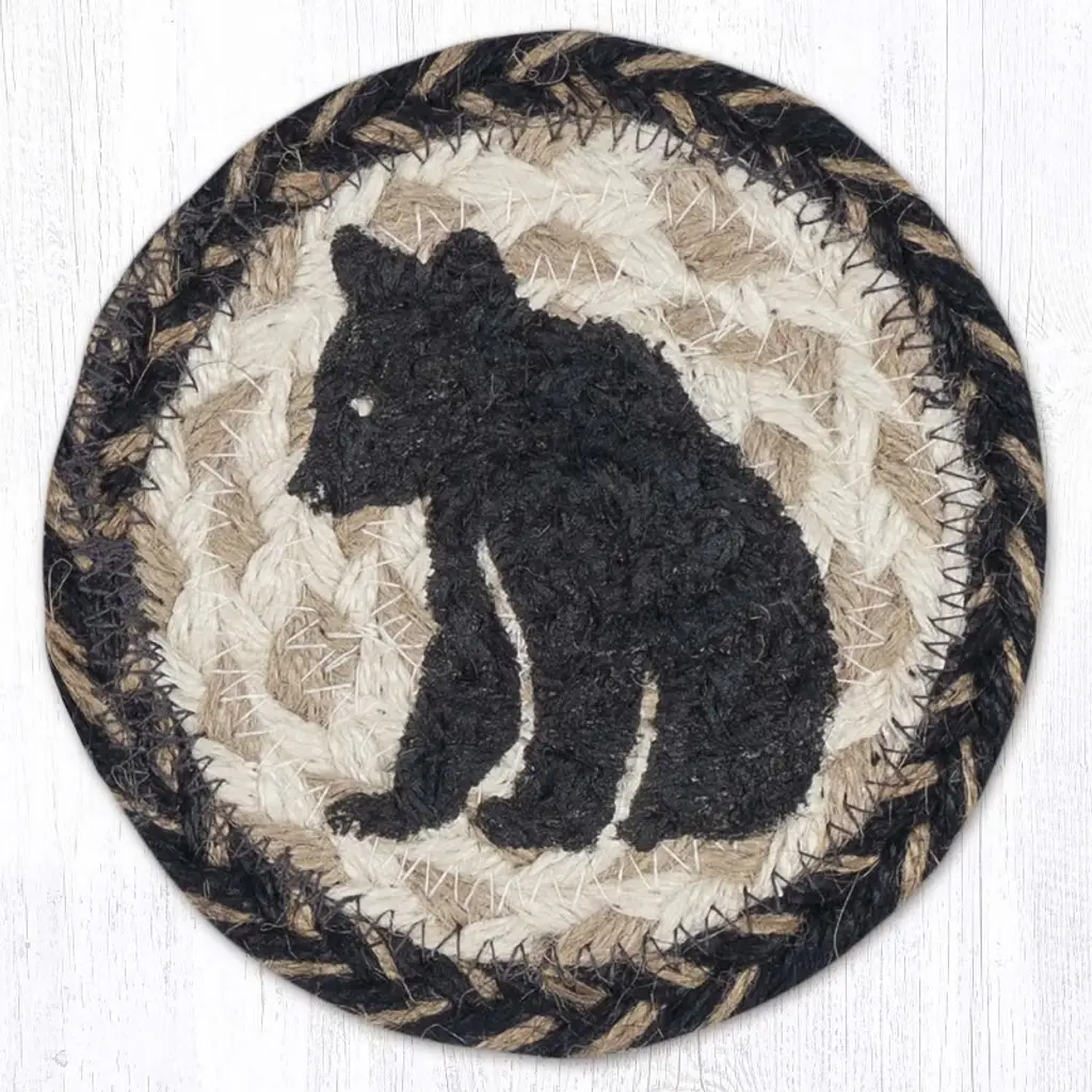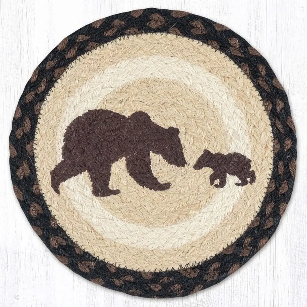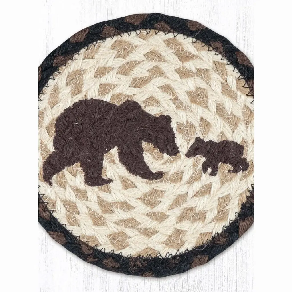 Earth Rugs Happy Bear Cub Large Round Jute Coaster – 7"x7" Hand-stenciled Rustic Farmhouse Accent