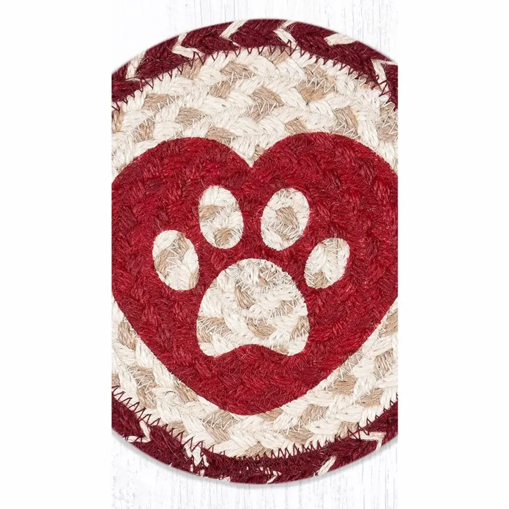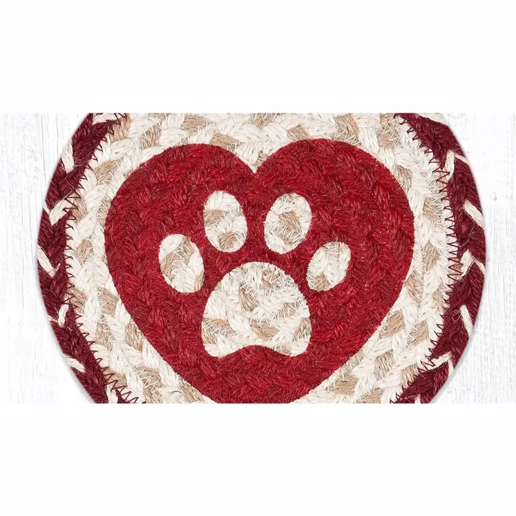 Earth Rugs Heart Paw Round Large Coaster 7" – Handcrafted Braided Jute Pet Lover Coaster