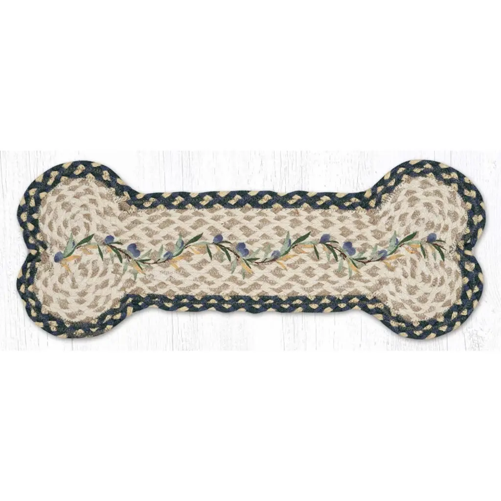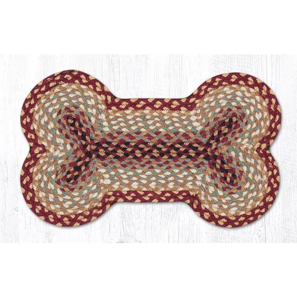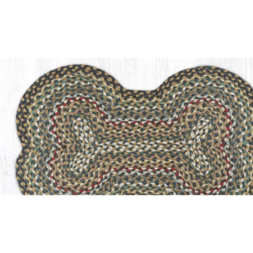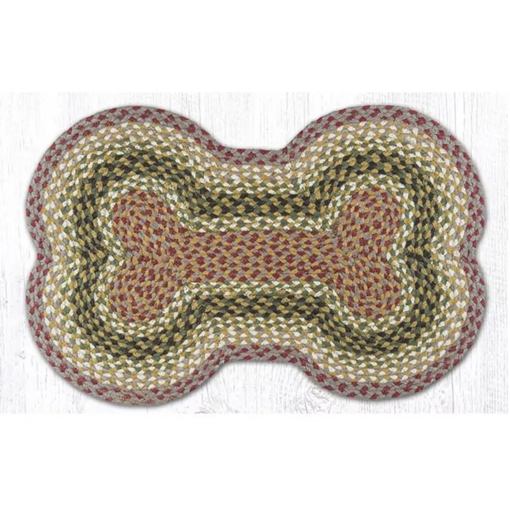 Earth Rugs Large Dog Bone Mat 18"x28", Fir & Ivory Braided Jute, Rustic Non-slip Pet Rug For Feeding Or Resting Areas