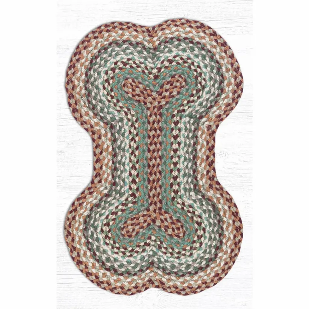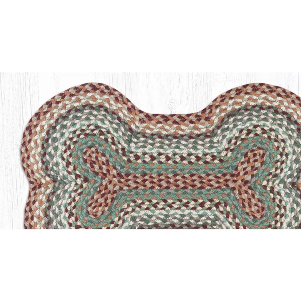 Earth Rugs Large Dog Bone Tread Mat 18"x28", Buttermilk & Cranberry Braided Jute, Rustic Pet Rug For Feeding & Lounging Areas