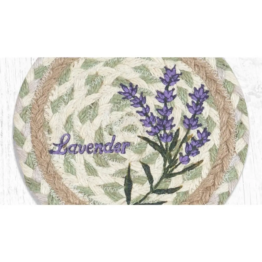 Earth Rugs Lavender Braided Coaster – 7" Eco-friendly Round Jute Large Coaster