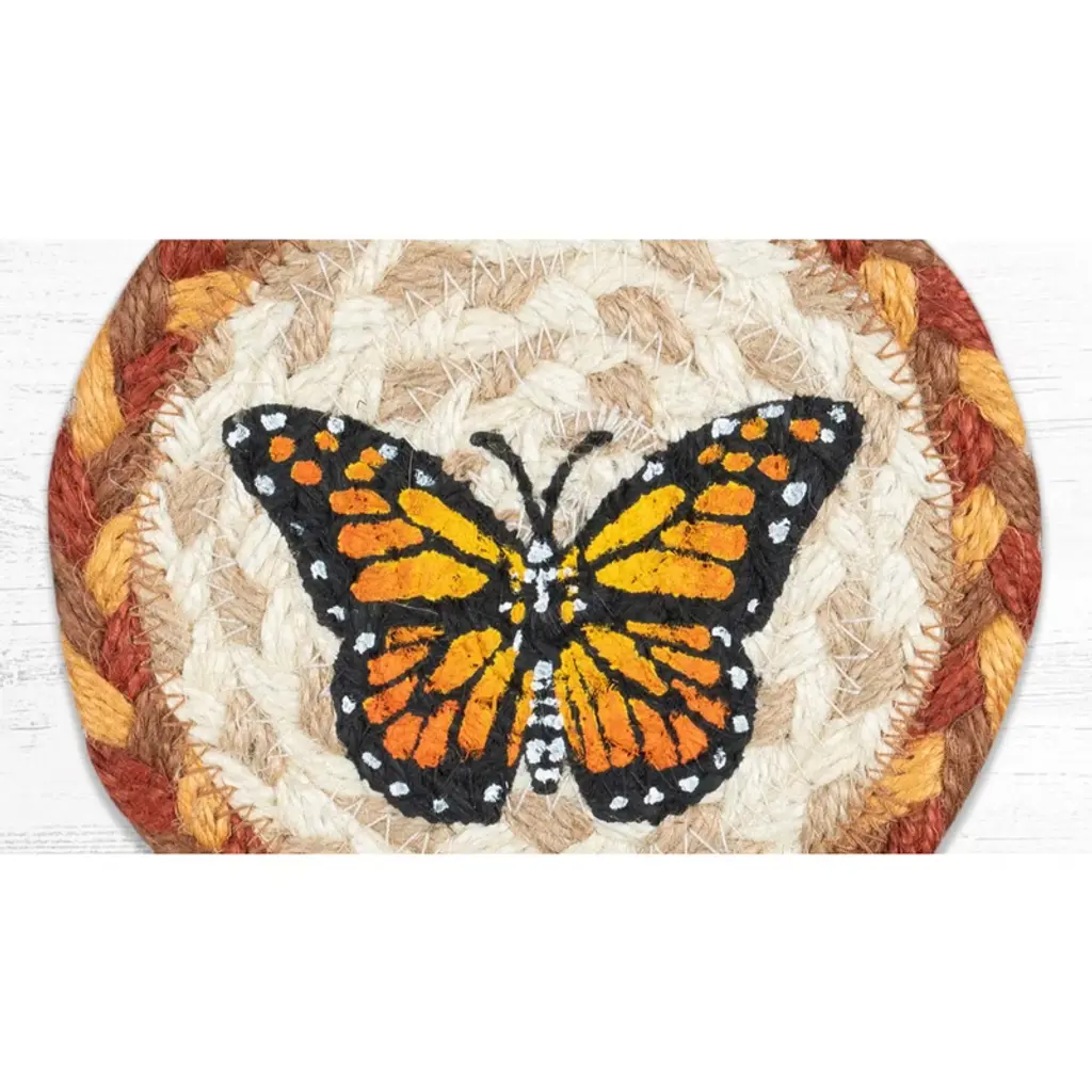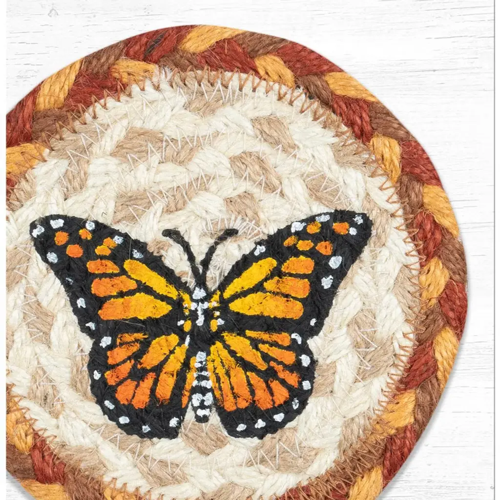 Earth Rugs Monarch Butterfly Coaster – 5"x5" Braided Jute With Hand-printed Monarch Design For Nature, Garden, Or Rustic Decor