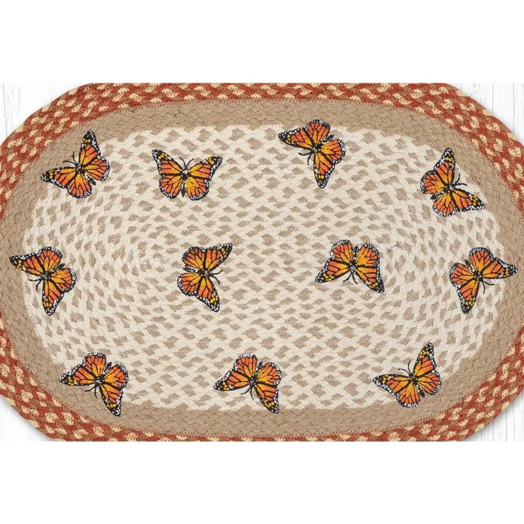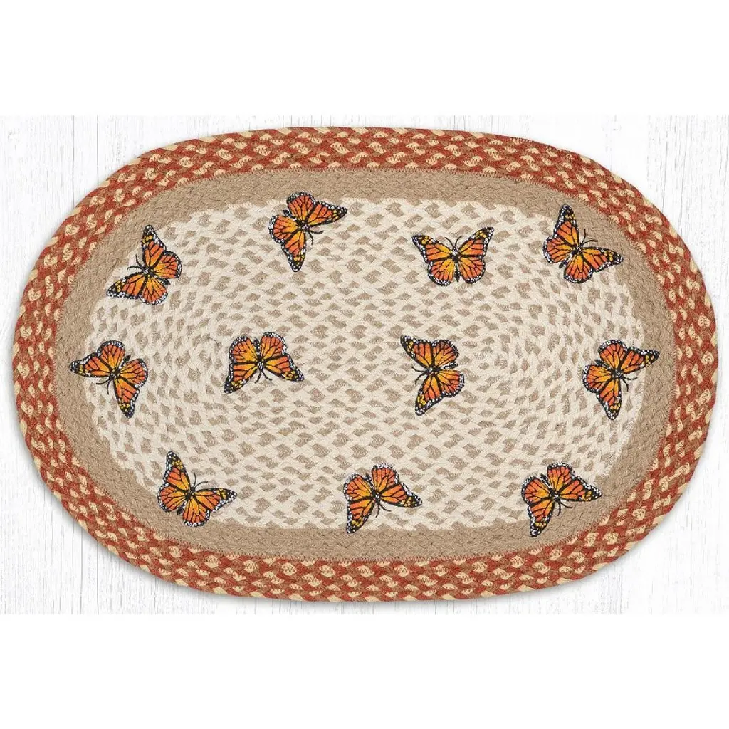 Earth Rugs Monarch Butterfly Oval Patch Braided Rug – Handcrafted Jute, 20" X 30"
