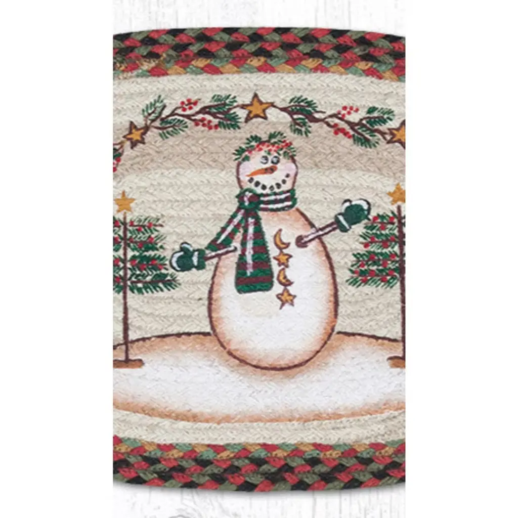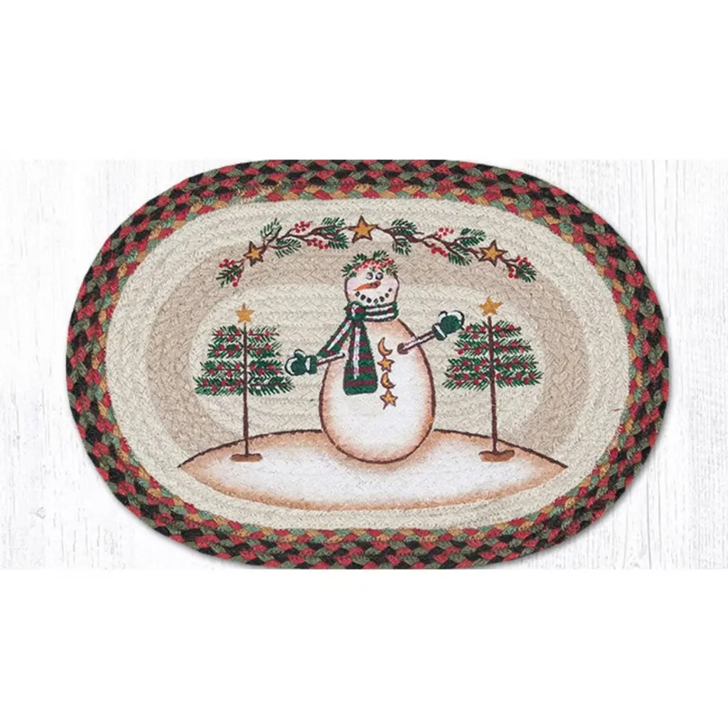 Earth Rugs Moon And Star Snowman Oval Jute Placemat 13"x19" Rustic Braided