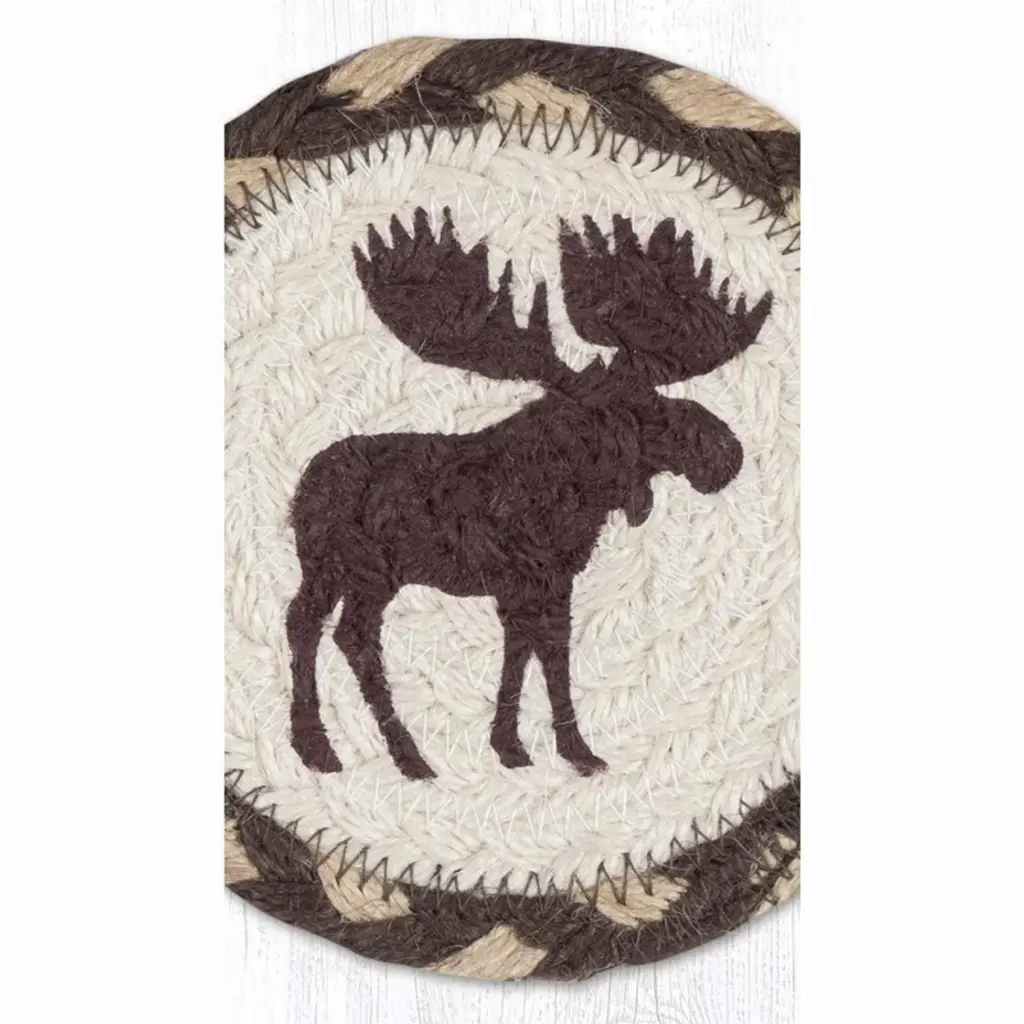 Earth Rugs Moose Crossing Printed Coaster – Rustic Wildlife Home Accent 5"x5"