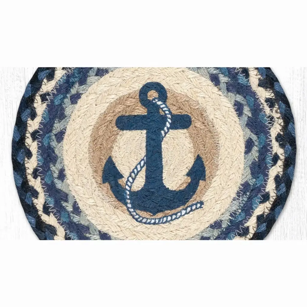 Earth Rugs Navy Anchor Decorative Printed Round Trivet 10" Rustic Coastal Accent Enhance your kitchen or dining area with the Earth Rugs Navy Anchor Printed Round Trivet. Featuring a classic navy anchor design, this 10" trivet brings coastal charm while protecting your surfaces from heat. Key Features: Protect your surfaces with a durable 10" round trivet for hot dishes. Showcase nautical style with a bold navy anchor print. Crafted by Earth Rugs for eco-friendly, high-quality home decor. Versatile use as a hot pad, coastal centerpiece, or decorative accent. Perfect size (10" diameter) for pots, pans, and serving dishes. Easy to maintain with simple spot cleaning.