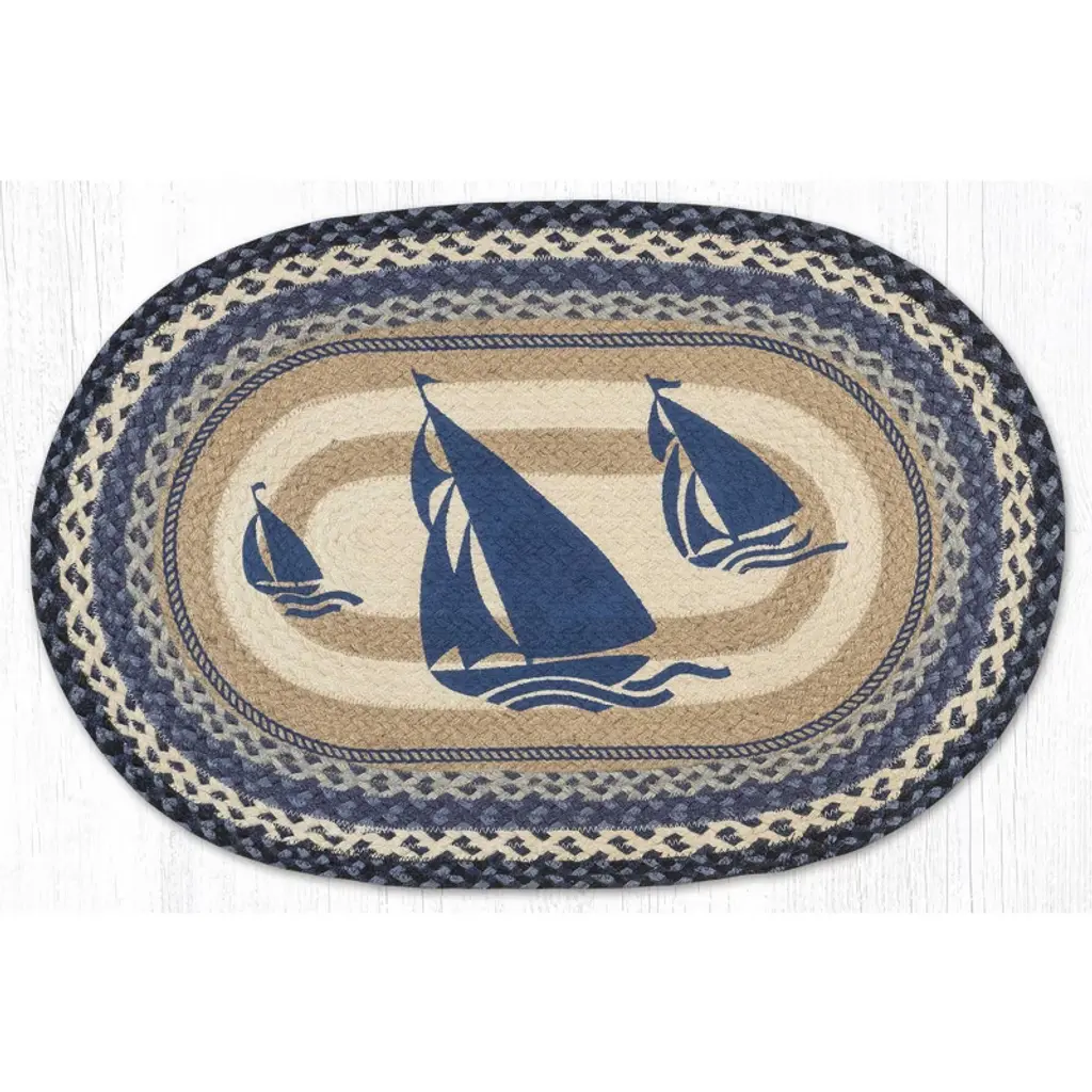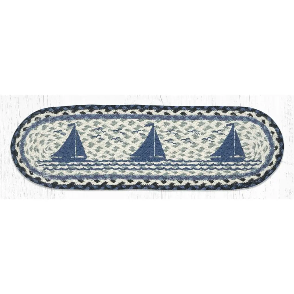 Earth Rugs Nubble Lighthouse Slice Tread Rug, 18"x29", Nautical Print, Hand-stenciled Jute, Coastal Accent Mat