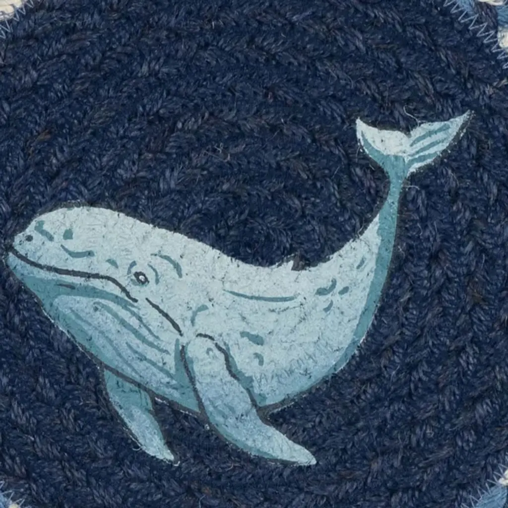 Celebrate coastal charm with the Suzanne Pienta Beluga Whale Printed Round Jute Trivet, a handcrafted accessory that brings the serene beauty of marine life into your home. Made from durable, natural braided jute, this 10"x10" round trivet features a delicate hand-stenciled beluga whale design in contrasting black and white tones. Its organic texture and rustic appeal complement coastal, nautical, and rustic farmhouse styles. Designed for horizontal use, it offers a versatile decorative accent or heat-resistant surface protector perfect for kitchen counters, dining tables, or coffee tables. Functional & Stylish: Protects surfaces from heat while adding coastal-inspired character Ideal Size: 10" × 10" × 0.17" dimensions fit most tabletops and counters Handcrafted Artistry: Unique hand-stenciled beluga whale design by Suzanne Pienta Natural Texture: Braided jute offers a warm, organic feel to any room Multi-Use: Use as a trivet or decorative accent on shelves and tables