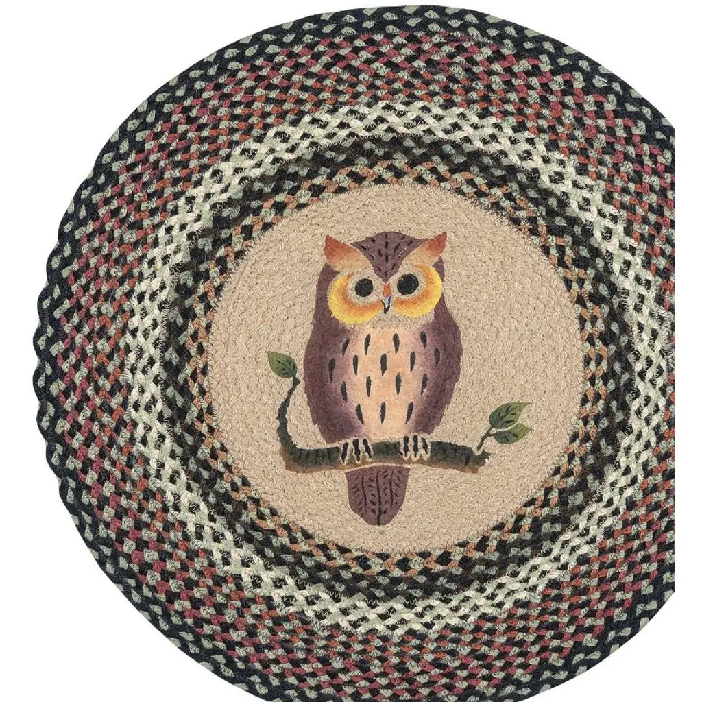 Earth Rugs Owl Round Patch Braided Tread – 27"x27" – Hand-stenciled Rustic Accent Decor