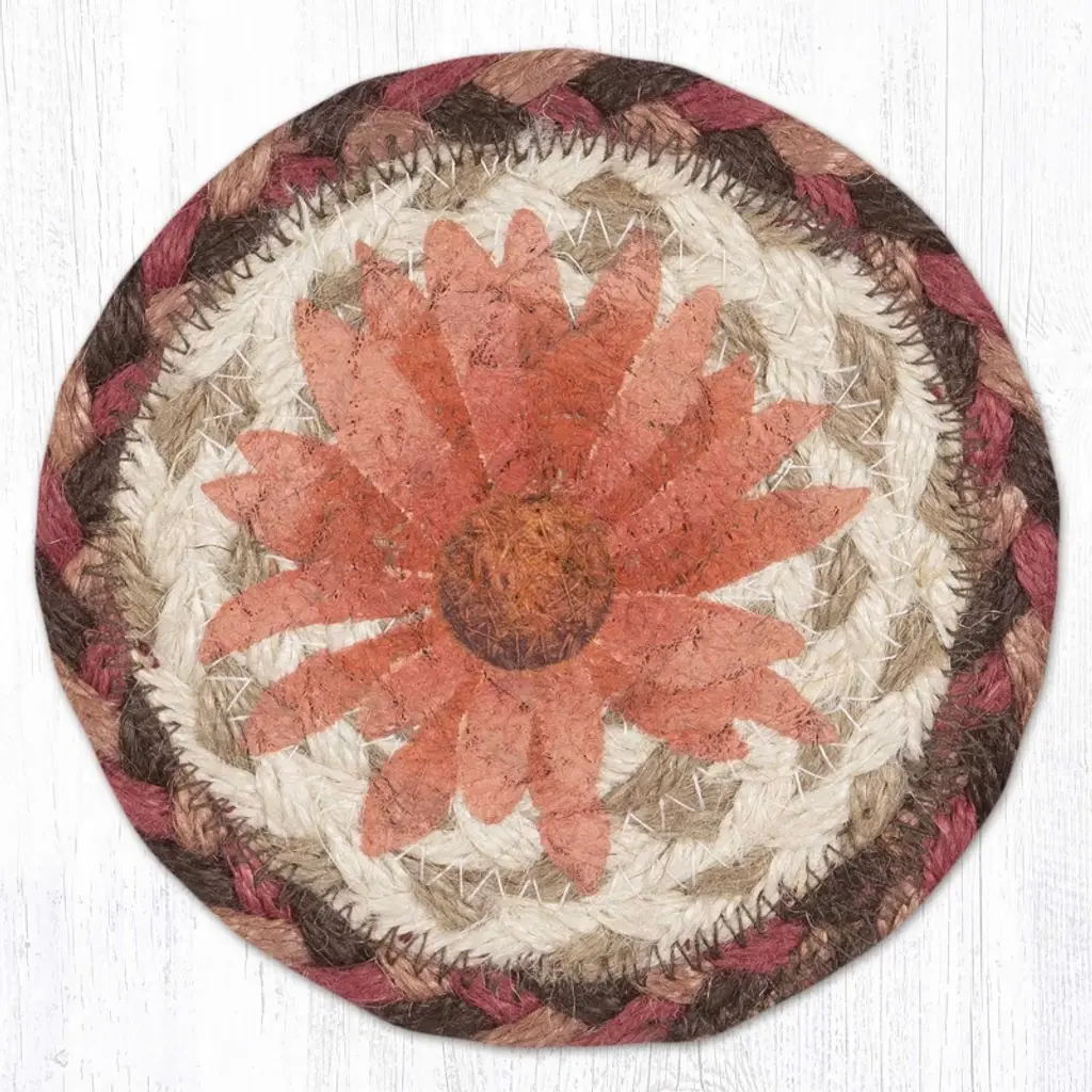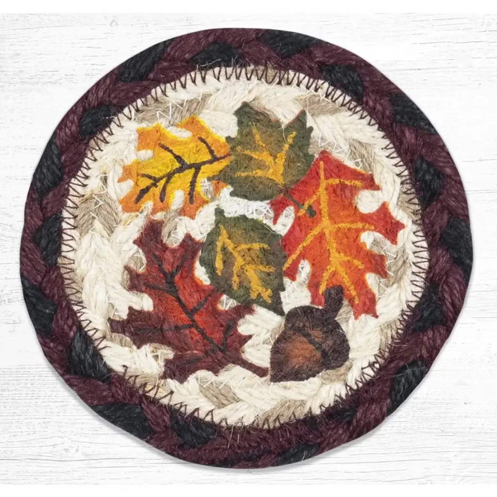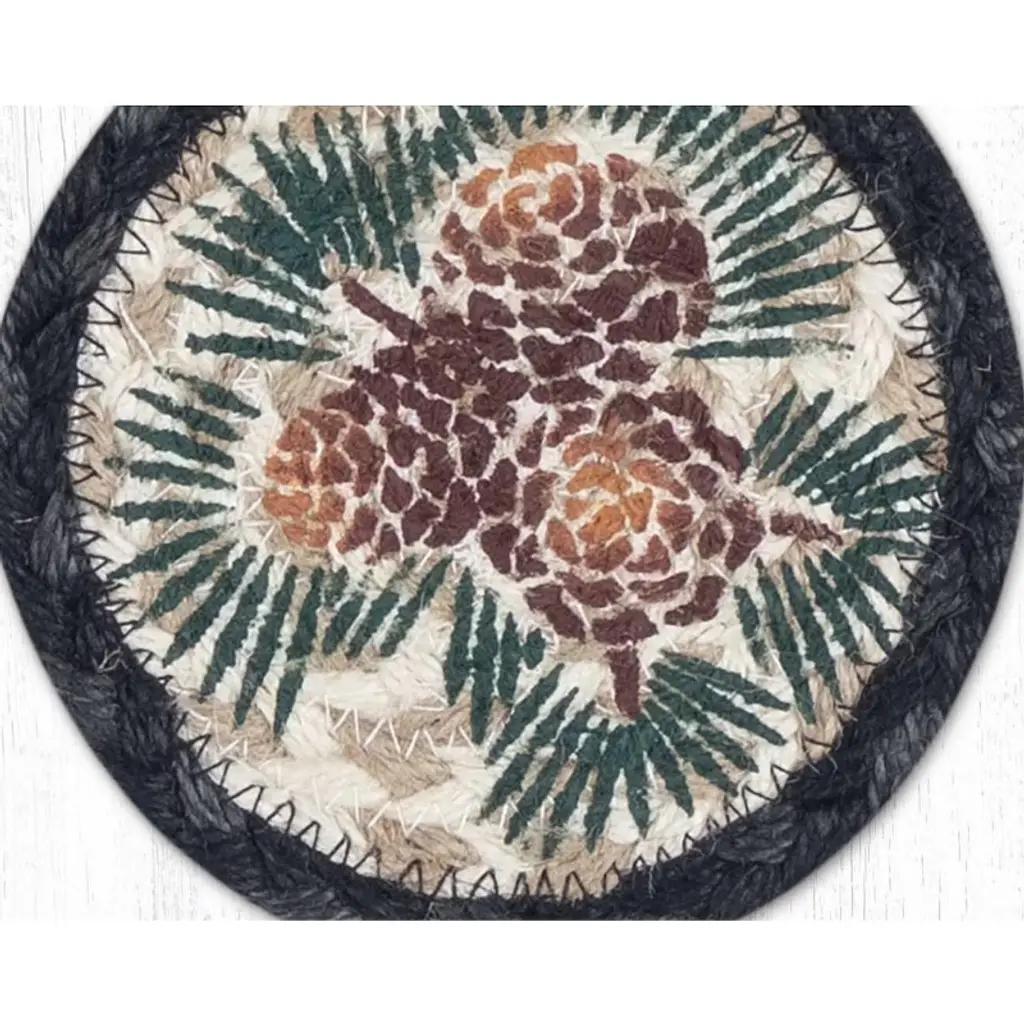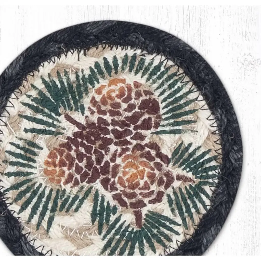 Earth Rugs Pinecone Jute Coaster – 5"x5" Nature-inspired Square With Woodland Print And Rustic Braided Texture