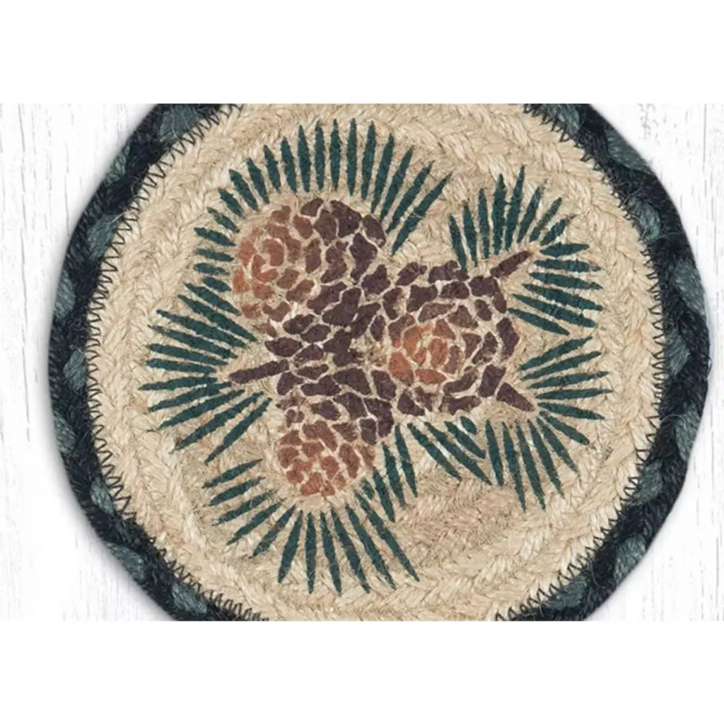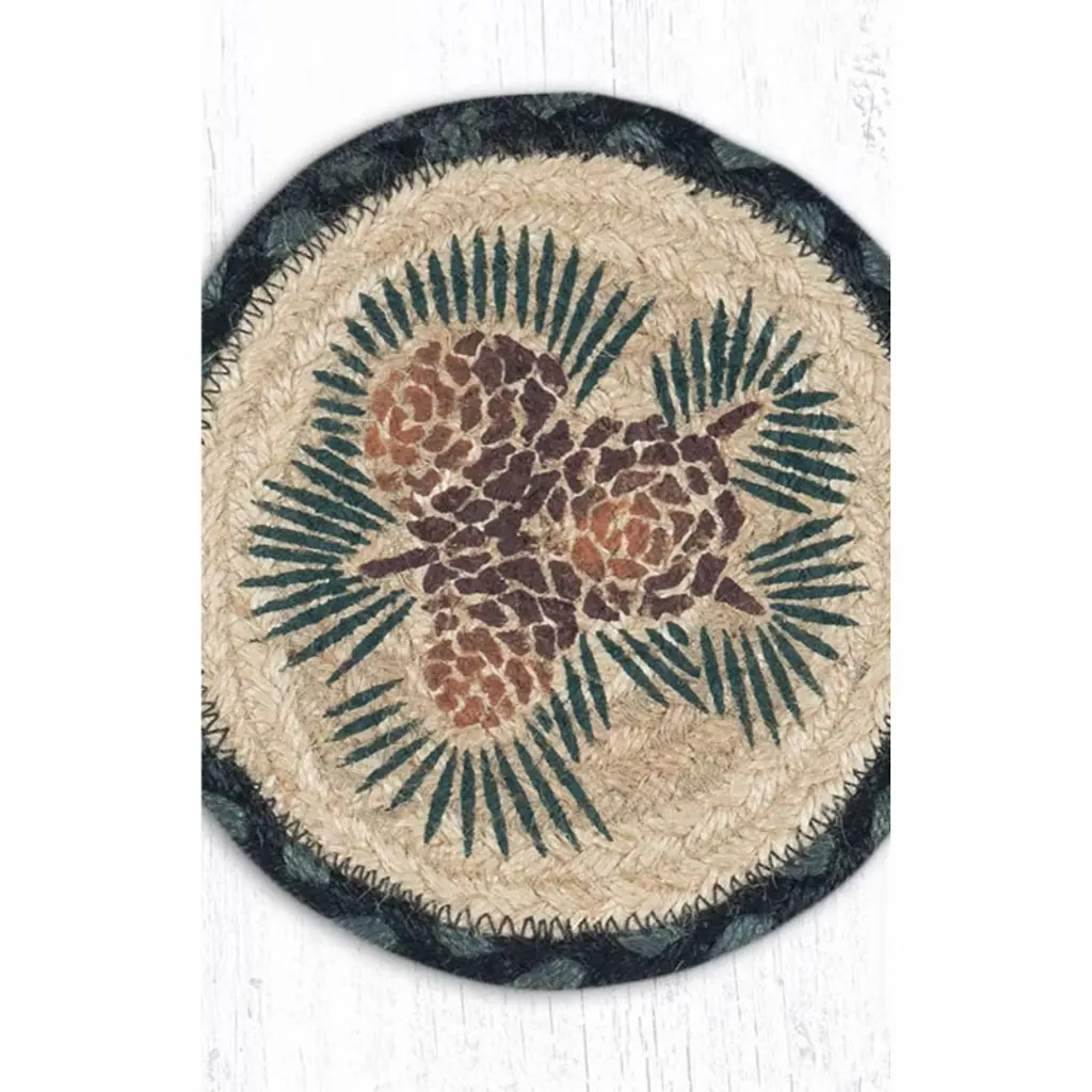 Earth Rugs Pinecone Round Jute Coaster – Large 7" Braided Drink Mat