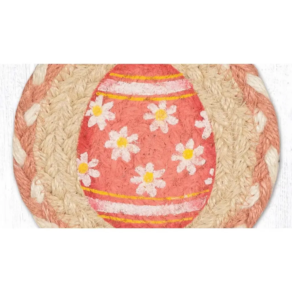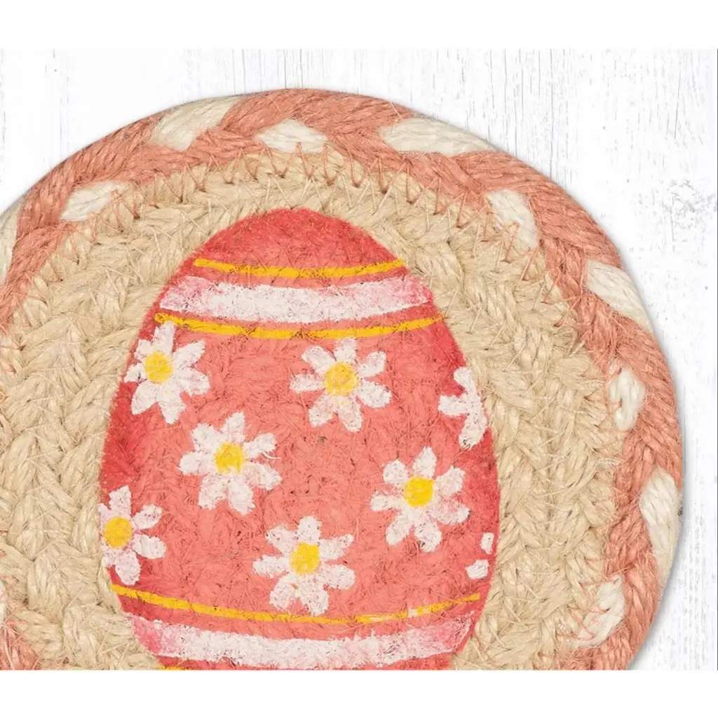 Earth Rugs Pink Egg Round Coaster – Braided Jute, Spring Easter Decor Accent, 5"x5"