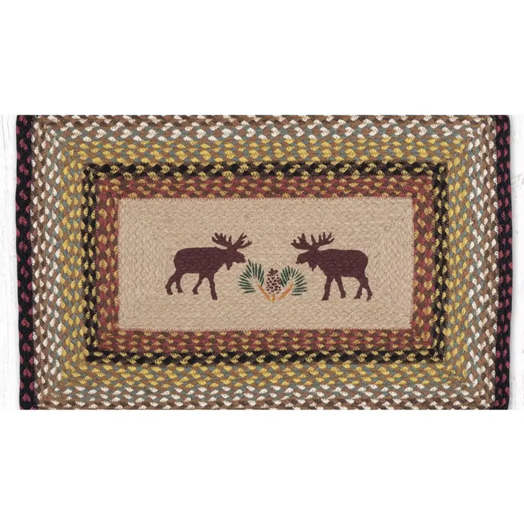 Earth Rugs Primitive Moose Pinecone Oblong Tread Rug – 20"x30" Accent Rug The detailed moose and pinecone design adds a warm, nature-inspired touch to farmhouse, country, or lodge-style interiors. Measuring 20"x30", this versatile rug is both decorative and functional — built to withstand everyday use while elevating your home’s rustic character. Key Features: Crafted from 100% natural braided jute for eco-friendly durability.Features a moose and pinecone lodge-inspired design for rustic charm.Oblong shape fits perfectly in entryways, kitchens, or cabin-style rooms.Measures 20"x30" (50.8 cm x 76.2 cm) – versatile size for home accents.Strong, long-lasting weave designed for daily use and easy maintenance.Adds a warm, nature-inspired touch to farmhouse, lodge, or rustic decor.