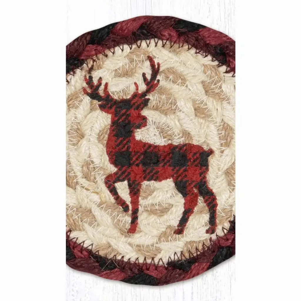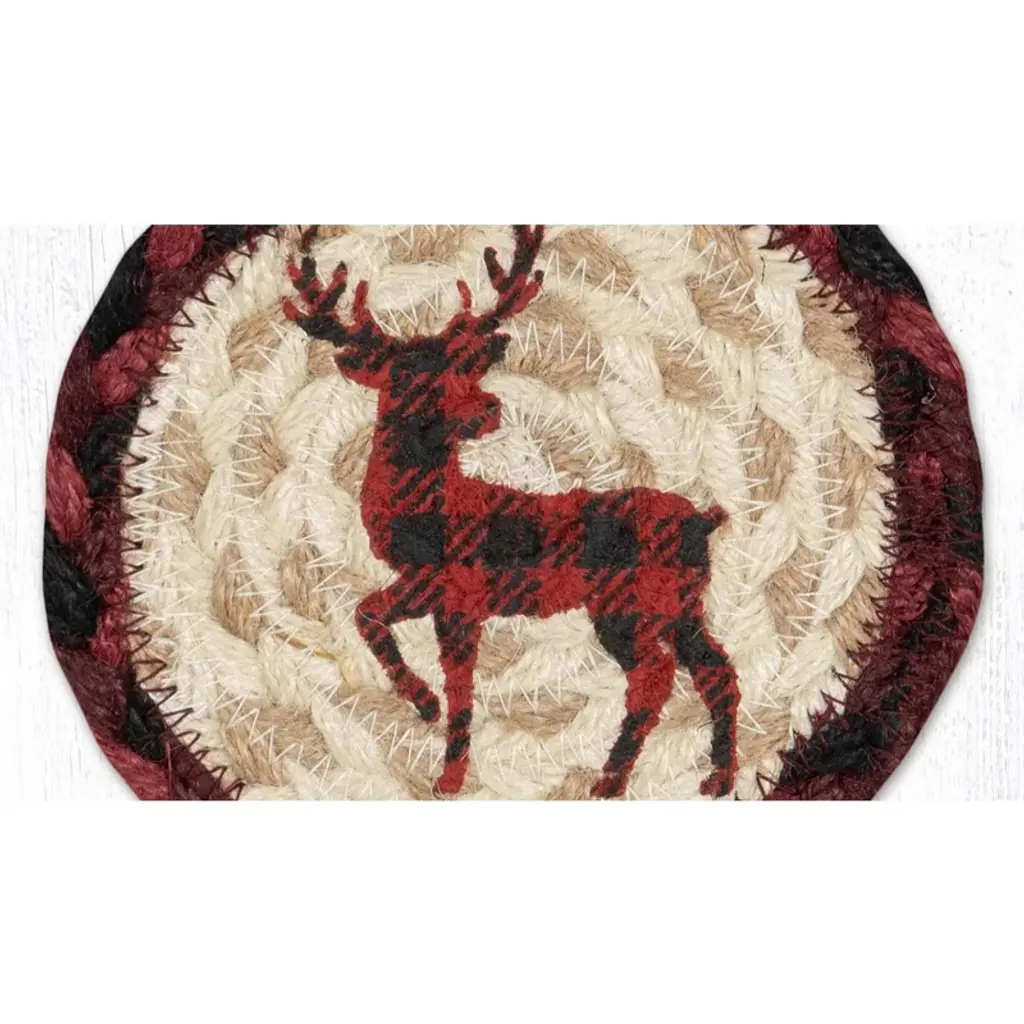 Earth Rugs Red Plaid Deer Printed Coaster 5"x5" Rustic Holiday Style
