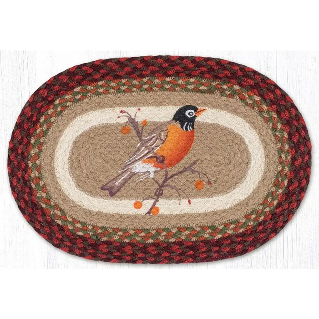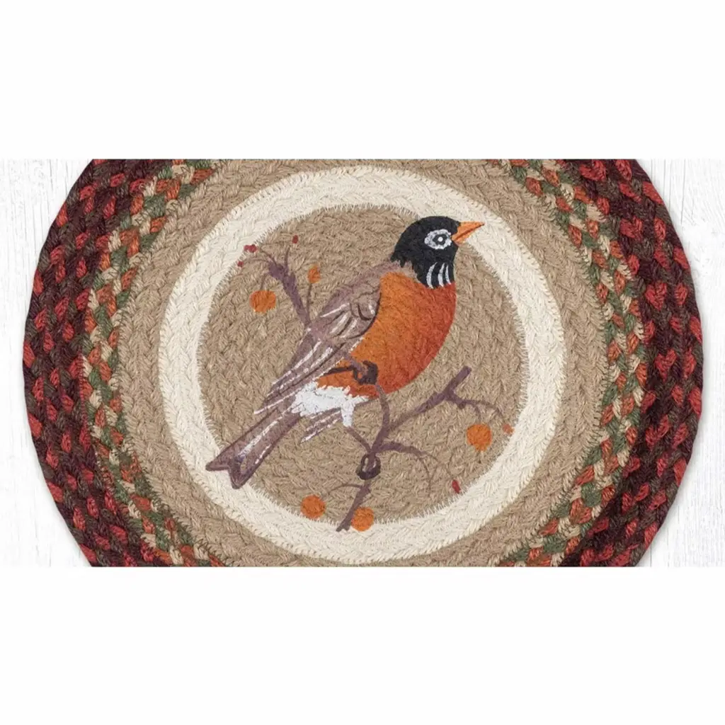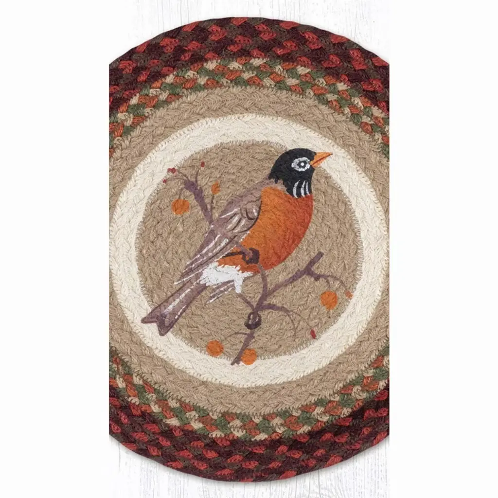 Enhance your rustic cabin dining experience with the Earth Rugs Robin Print Round Placemat. Measuring 15 inches in diameter, this placemat combines natural charm with practical function. The detailed robin print adds a touch of woodland elegance, while its durable construction protects your table from heat and spills. Ideal for bringing a cozy, nature-inspired aesthetic to your meals, this placemat is both stylish and resilient for everyday use. Key Features: Brand: Earth Rugs – trusted for premium braided & printed home decor Design: Features a charming robin bird print for a rustic, nature-inspired look Size: 15” x 15” round placemat, ideal for dinner plates, centerpieces, or decor Style: Perfect for farmhouse, rustic, country cottage, or cabin decor Material: Durable, easy-care braided construction with high-quality printing Care Instructions: Spot clean with mild soap and water; air dry for long-lasting use Versatile Use: Great for dining tables, coffee tables, or seasonal decorations
