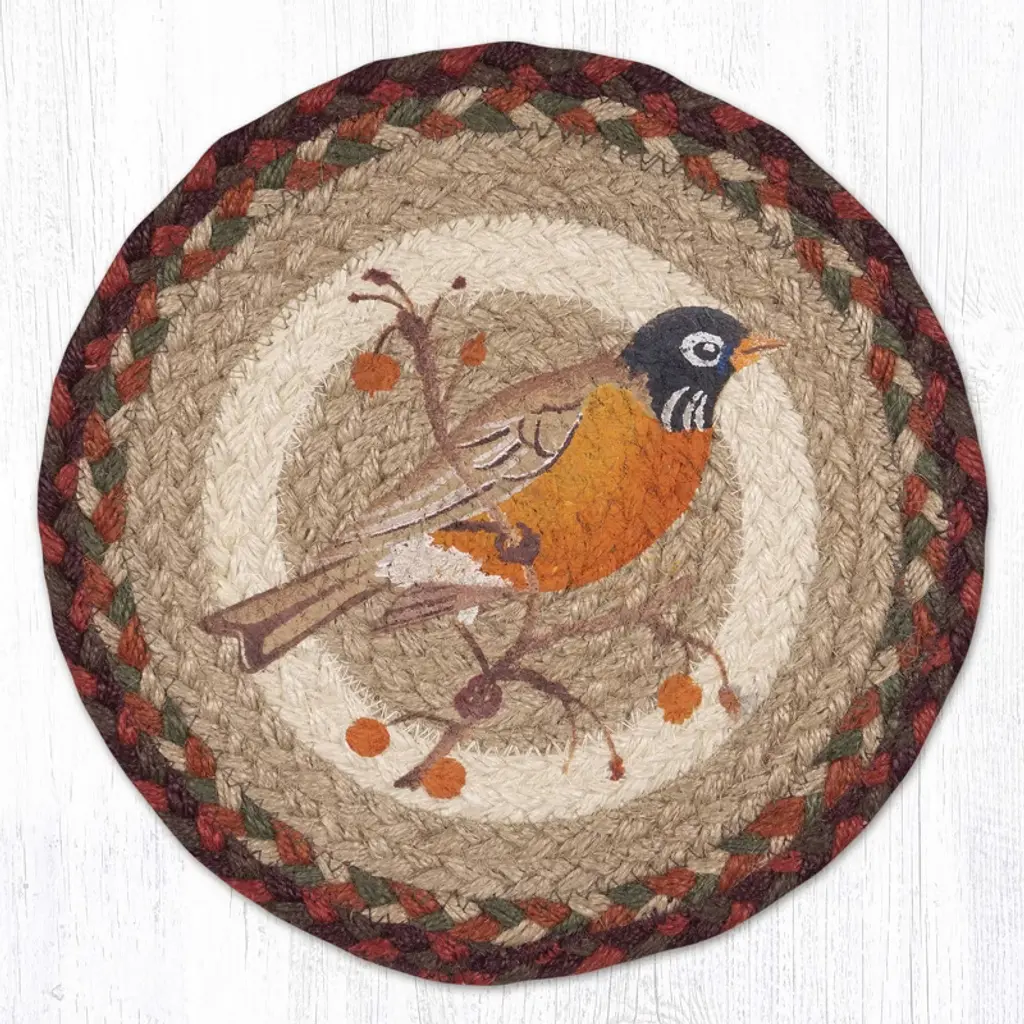 Earth Rugs Robin Print Round Placemat – Rustic Cabin Style Dining 15”