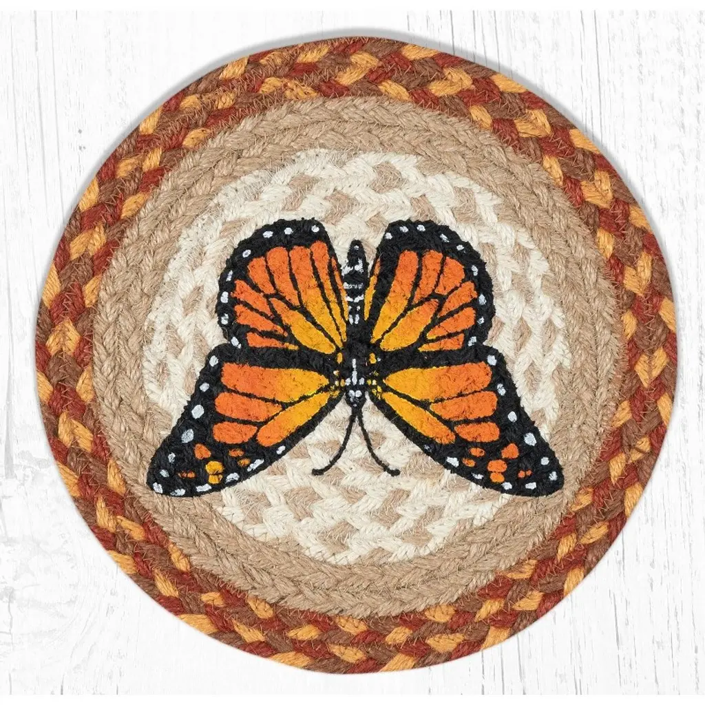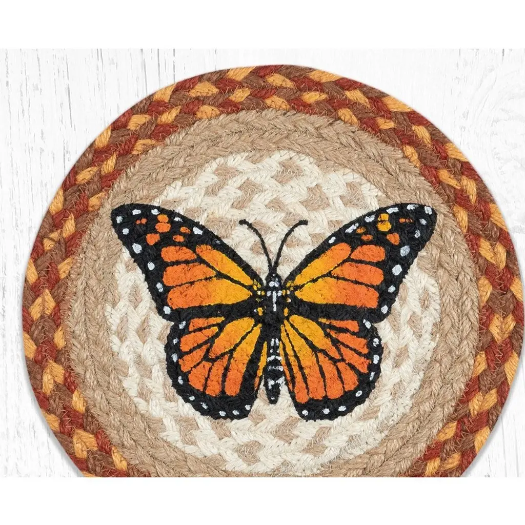 Earth Rugs Round Trivet – 10"x10" Monarch Butterfly Printed Braided Jute Mat In Natural Botanical Garden Style
