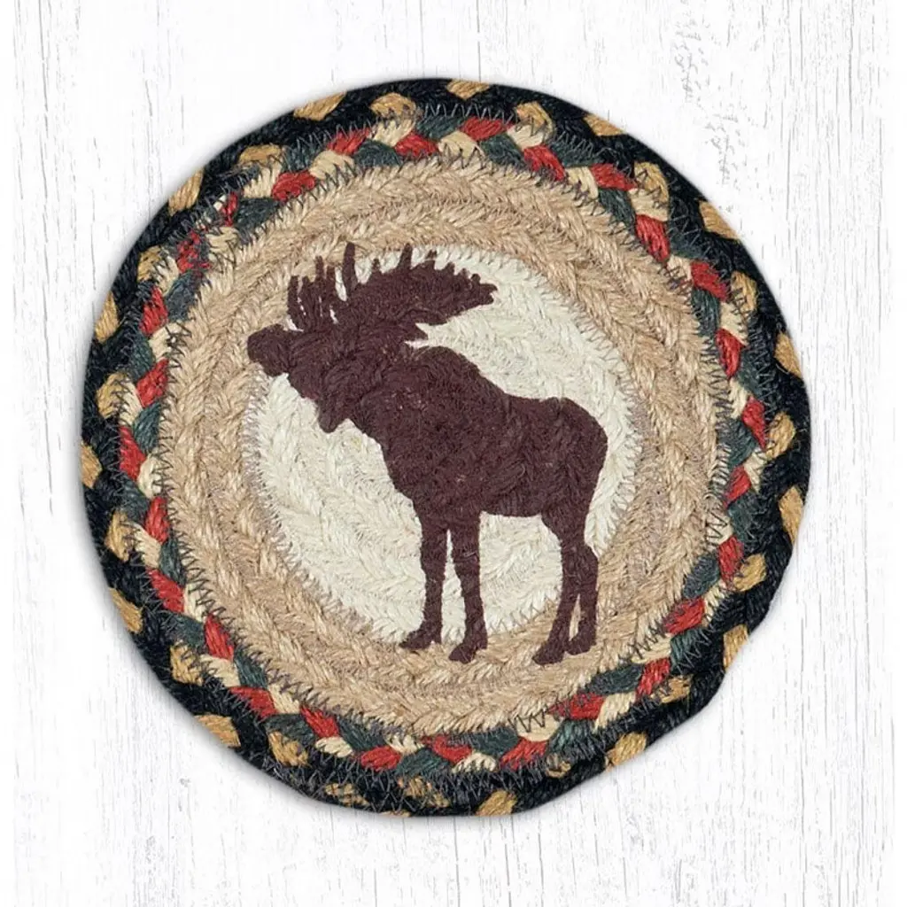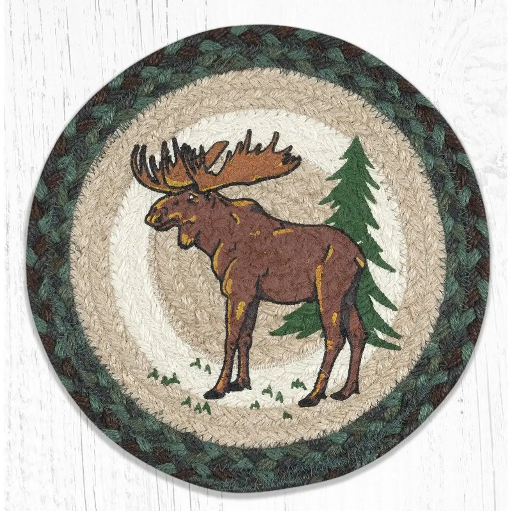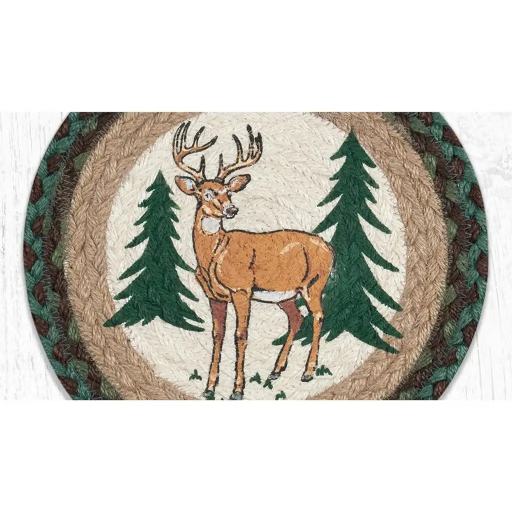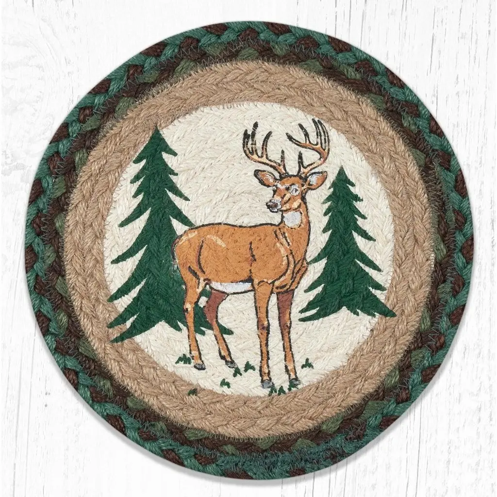 Earth Rugs Round Trivet – 10"x10" New Buck Printed Braided Jute Mat In Rustic Woodland Deer Design