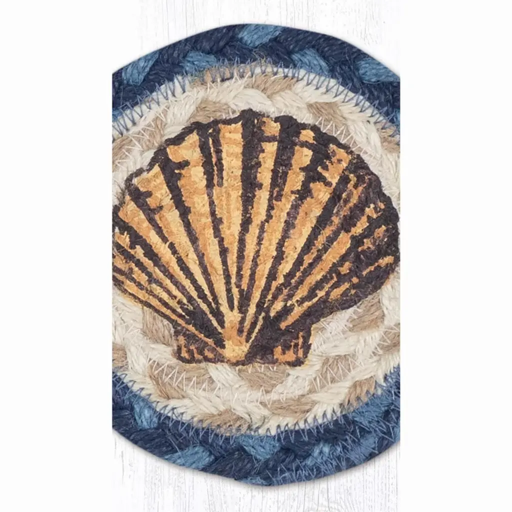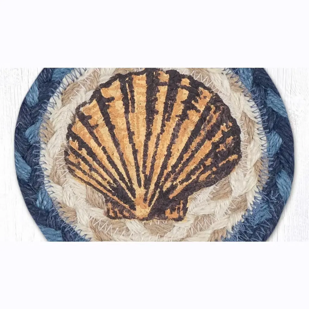 Earth Rugs Rustic Aqua Shell Design Jute Coaster 5"x5" Handmade Ocean Drink Mat