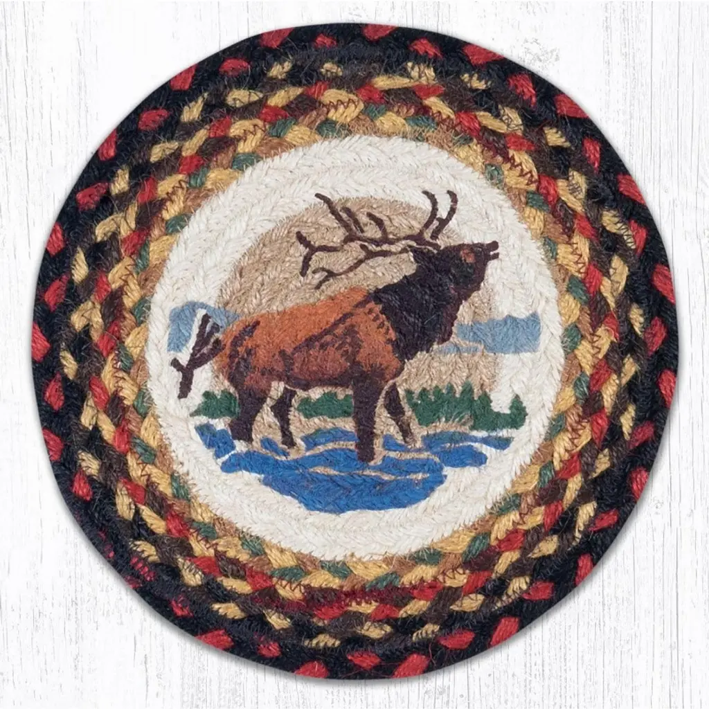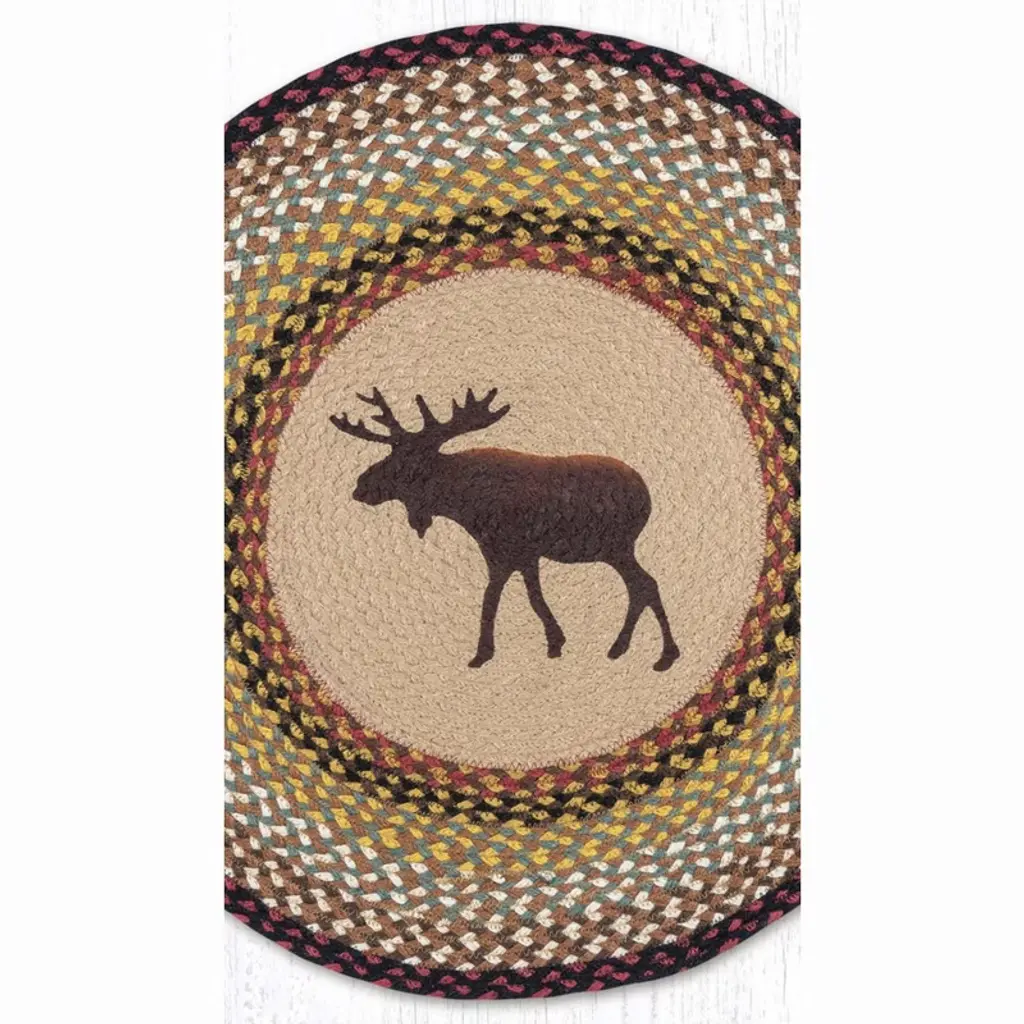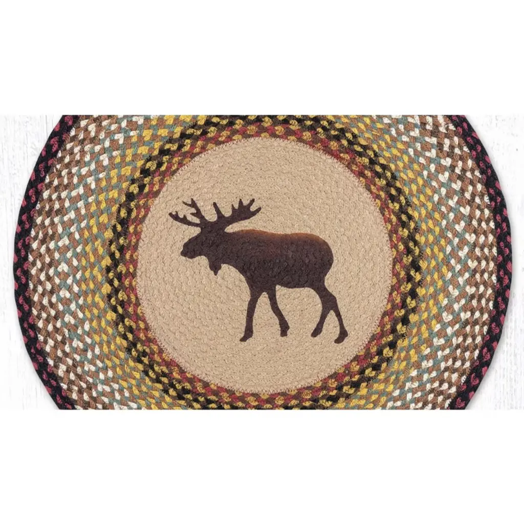 Earth Rugs Rustic Lodge Round Tread Rug With Moose Design – 27" Jute Patch