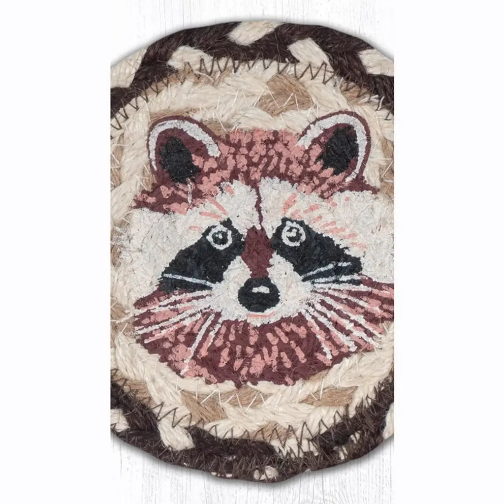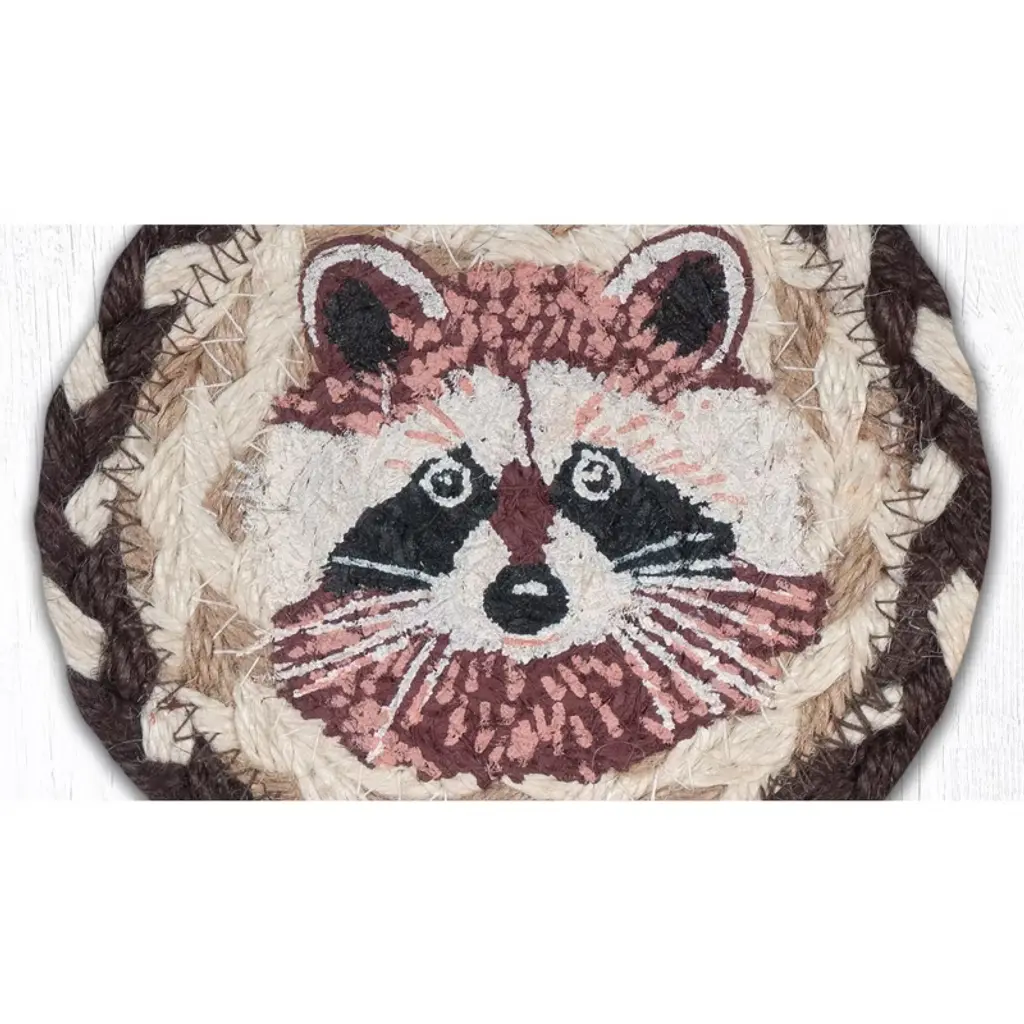 Earth Rugs Rustic Raccoon Design Jute Coaster 5"x5" Handmade Wildlife Drink Mat