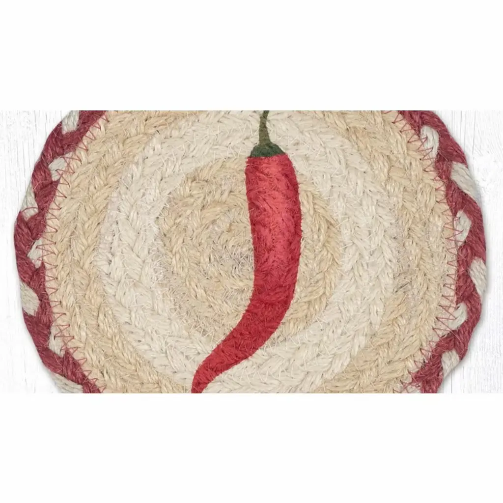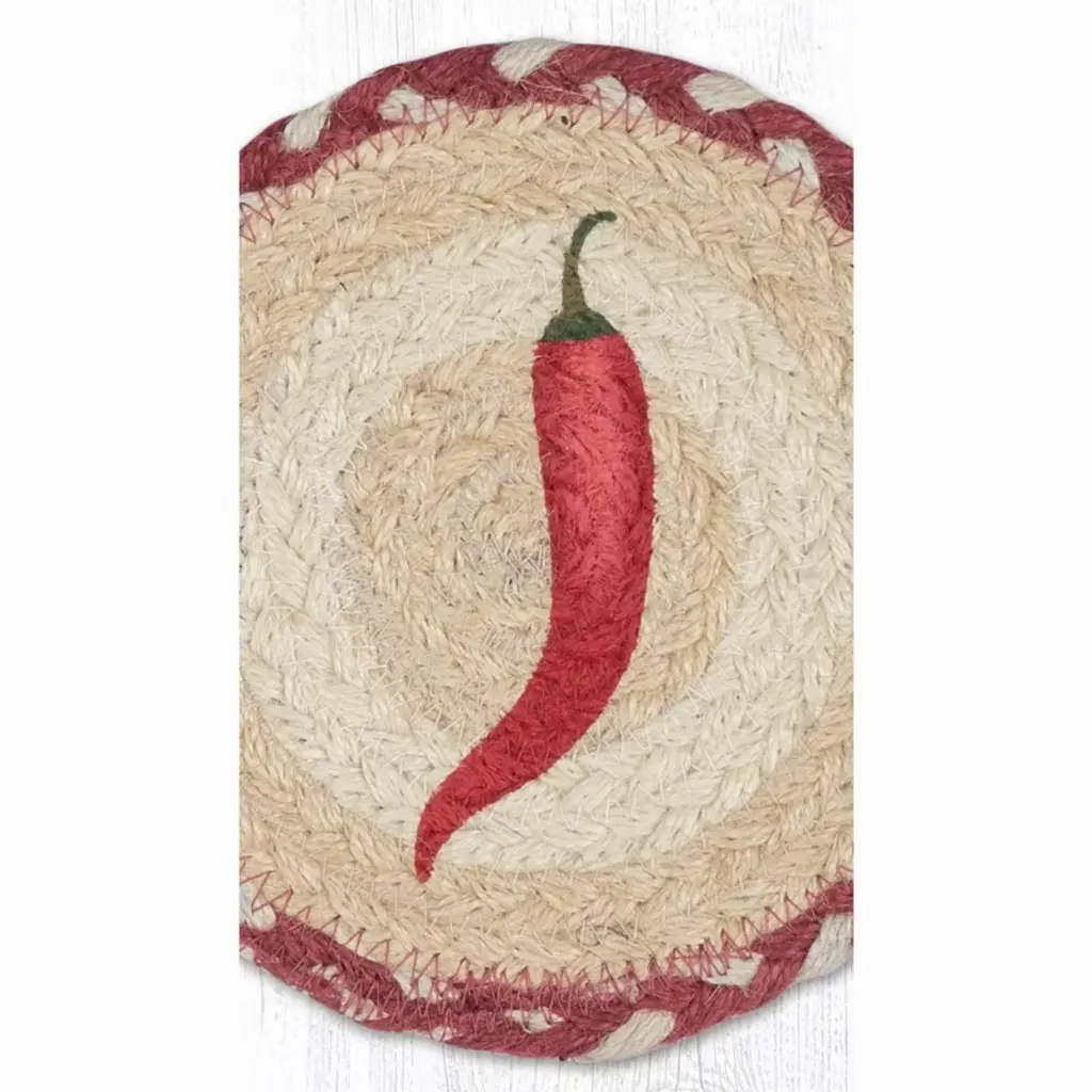Earth Rugs Rustic Single Chili Pepper Round Coaster – Large 7" Country Kitchen Style