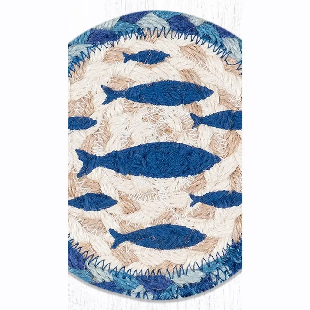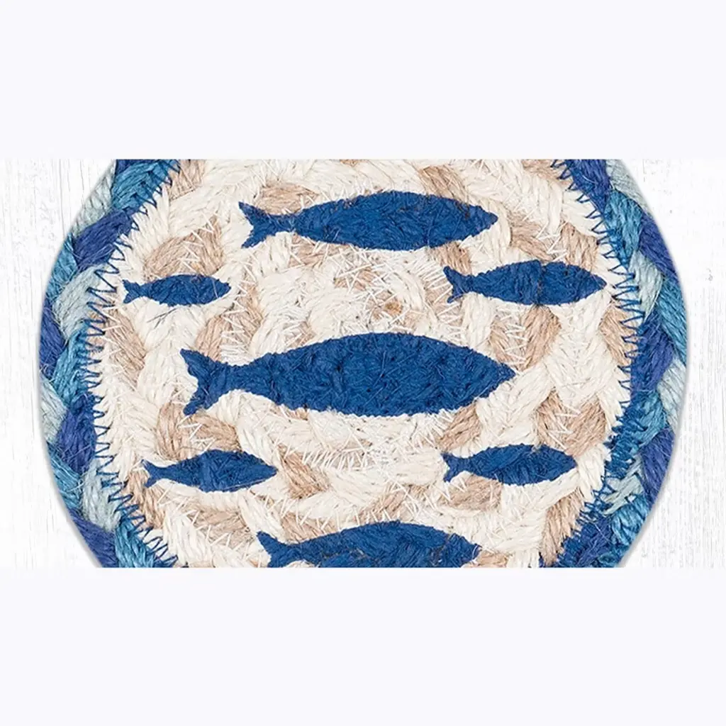 Earth Rugs Square 5" Fish Coaster Cotton Blend Rustic Beach House Accent