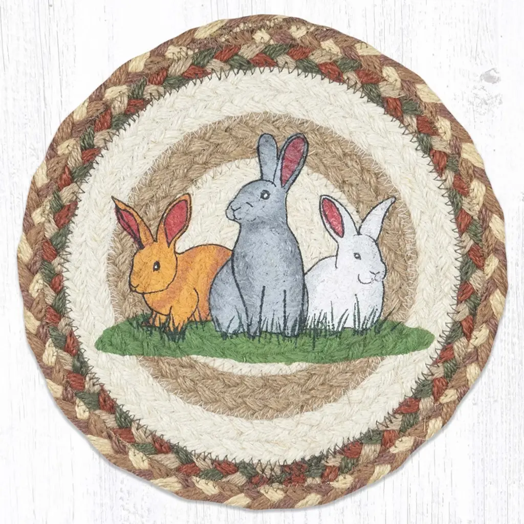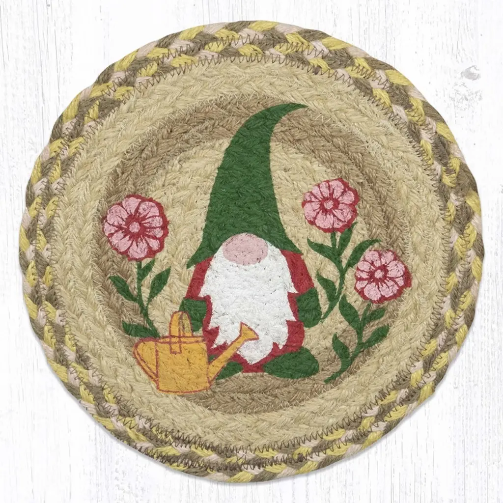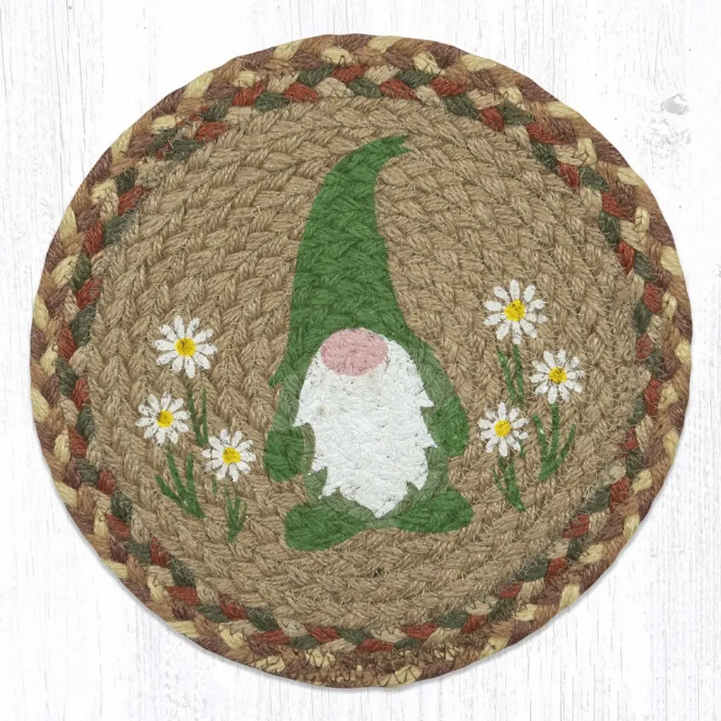 Earth Rugs Whimsical Garden Jute Trivet – 10" Round Braided Mat With Sunflower Gnome Design