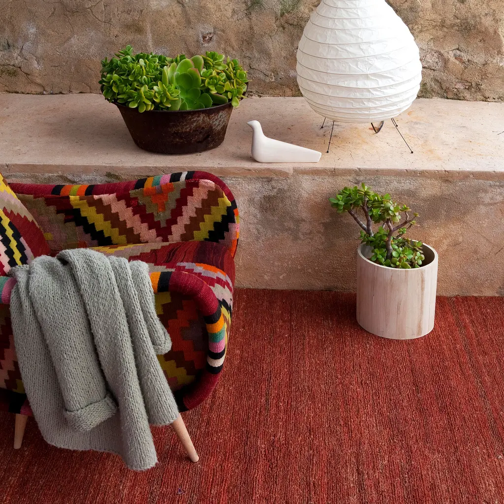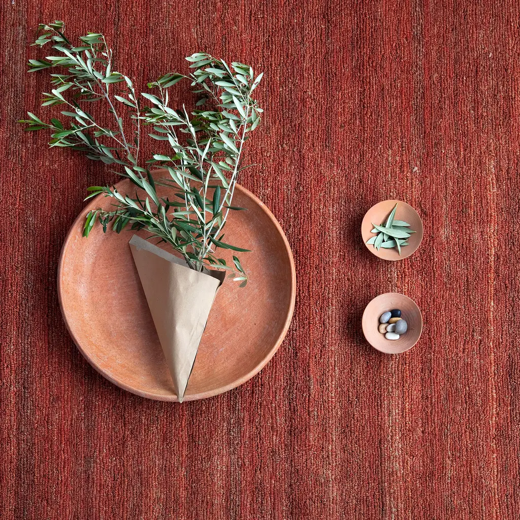 Created with jute fibre, this hand-knotted rug with tight loops evokes the textures of Earth, appealing to the senses, returning to the basics in life. Environmentally friendly, this is a fresh and rustic rug, presenting exceptional insulating and anti-static properties.