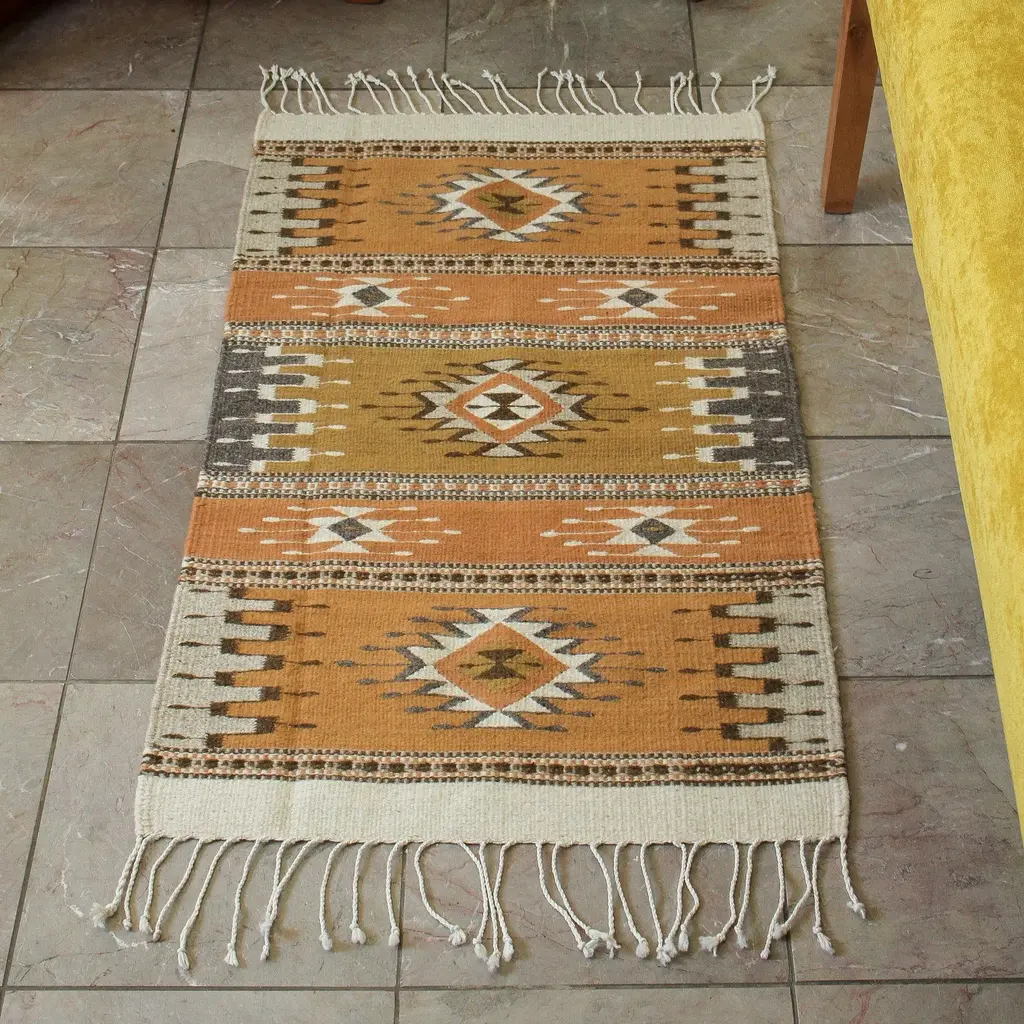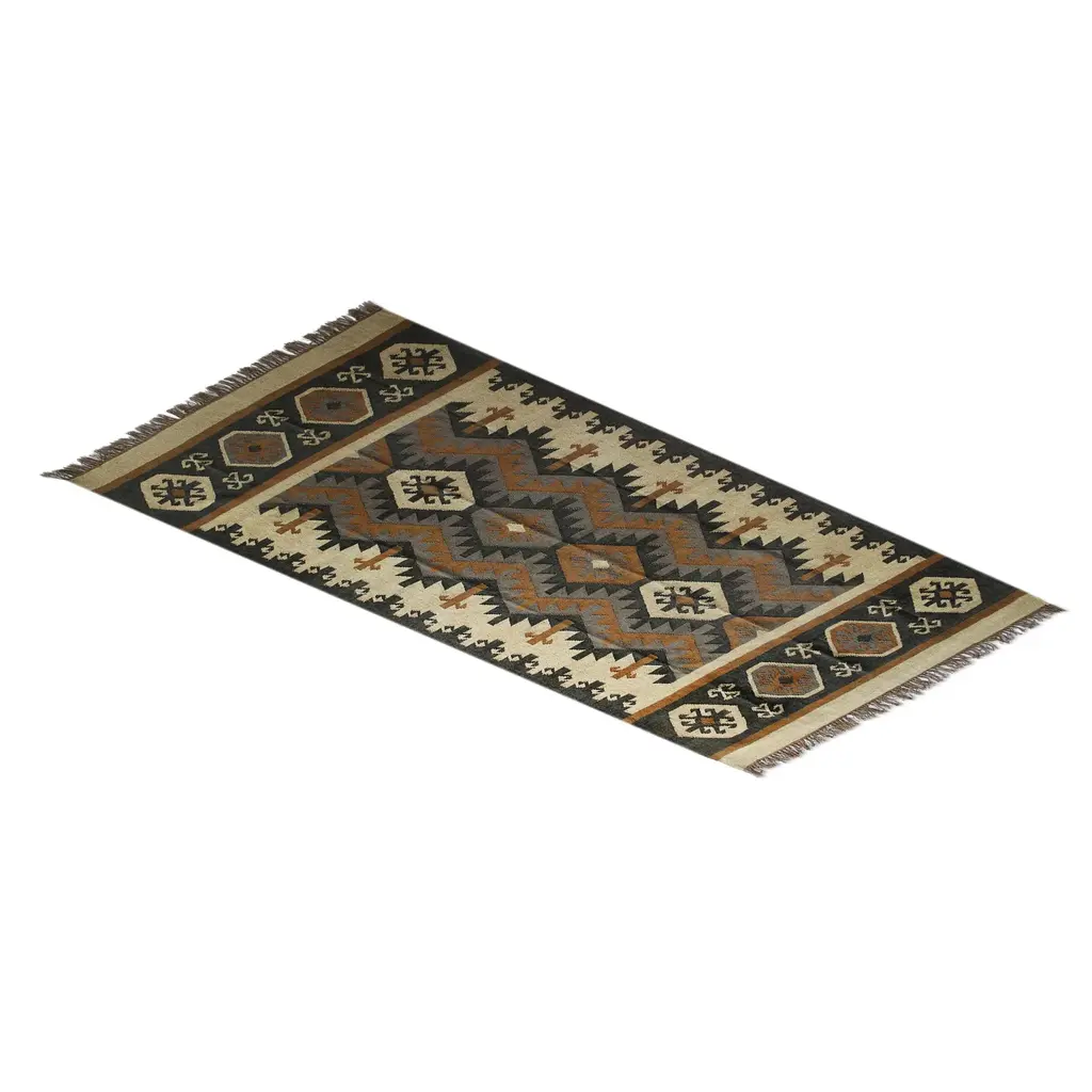 Earth-Tone Geometric Wool Dhurrie Rug (3x5