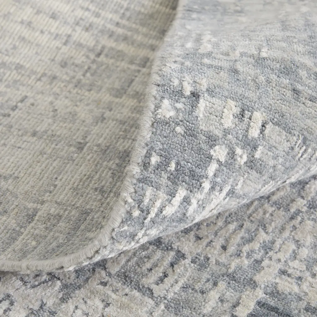 Collection: Eastfield Colors: Gray Construction: Hand Woven Material: Face: Viscose, Wool Pile: Low Pile Pile Height: 0.39" Styles: Contemporary,Casual Backing: N/A Made In: India Thickness: 0.39" Price Range: $$$$$ (Premium)