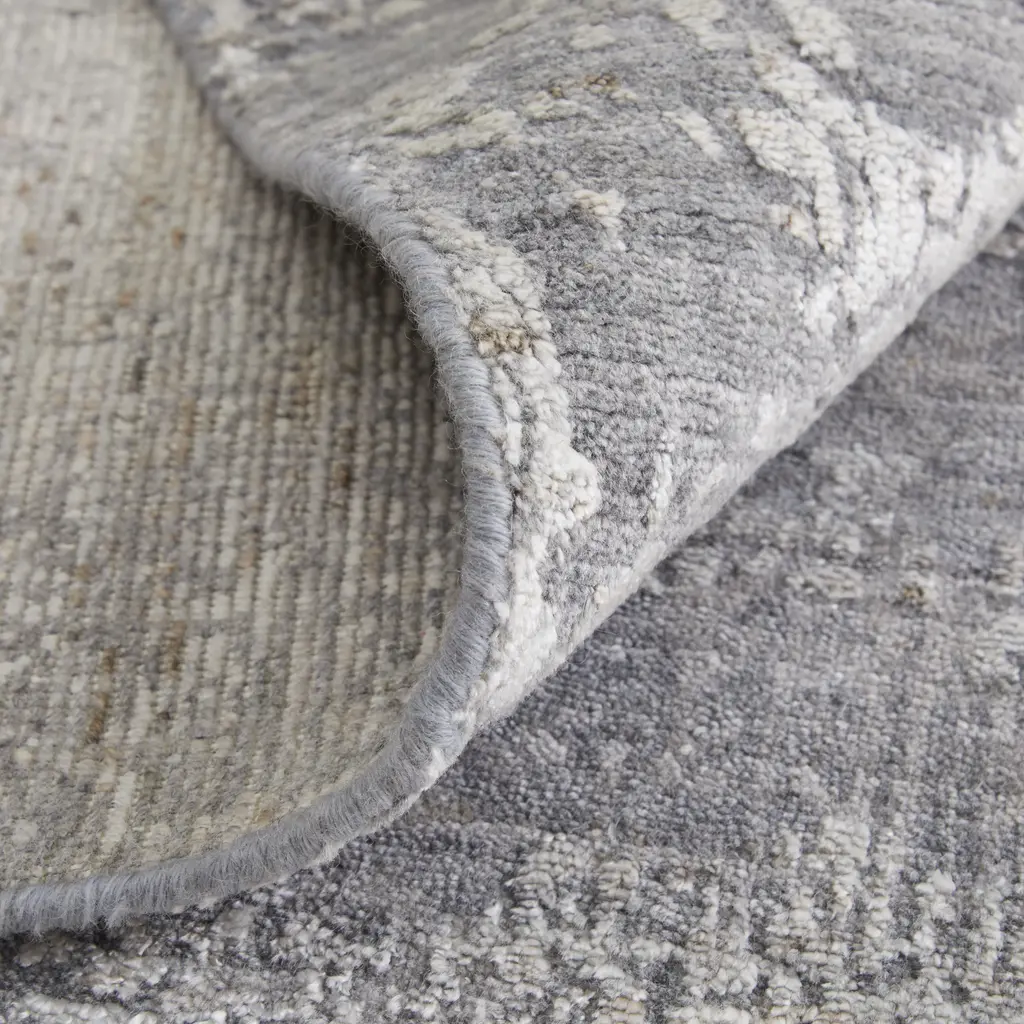 Collection: Eastfield Colors: Gray Construction: Hand Woven Material: Face: Viscose, Wool Pile: Low Pile Pile Height: 0.39" Styles: Contemporary,Casual Backing: N/A Made In: India Thickness: 0.39" Price Range: $$$$$ (Premium)
