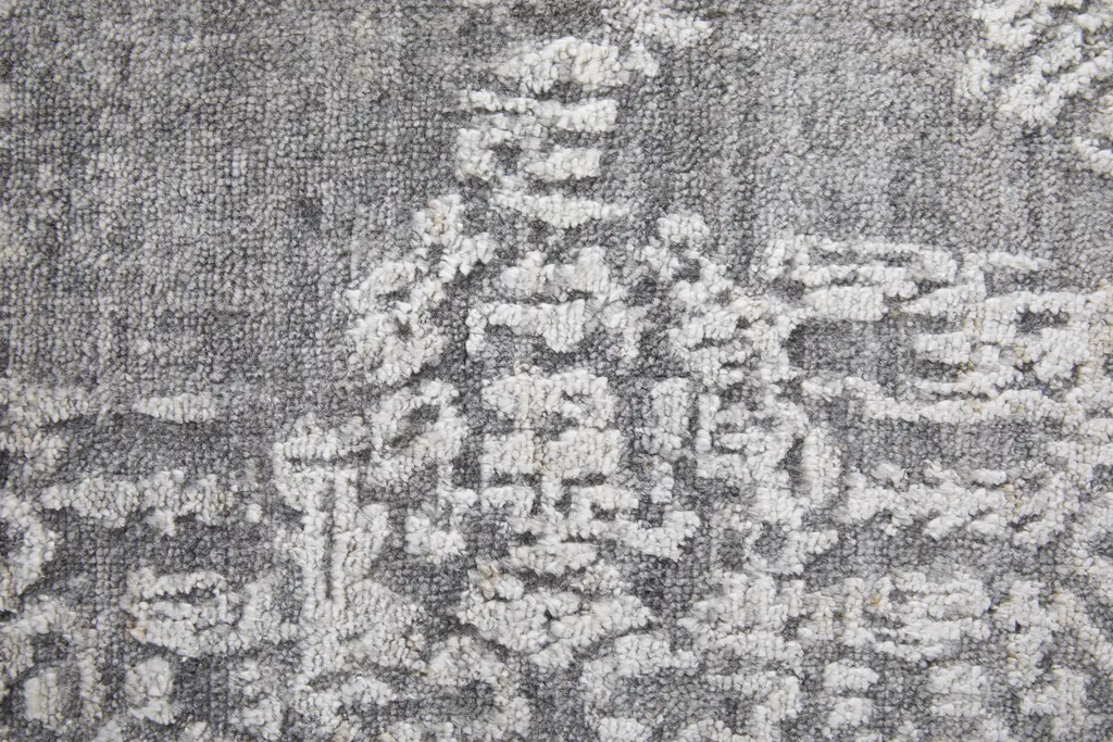 Collection: Eastfield Colors: Gray Construction: Hand Woven Material: Face: Viscose, Wool Pile: Low Pile Pile Height: 0.39" Styles: Contemporary,Casual Backing: N/A Made In: India Thickness: 0.39" Price Range: $$$$$ (Premium)