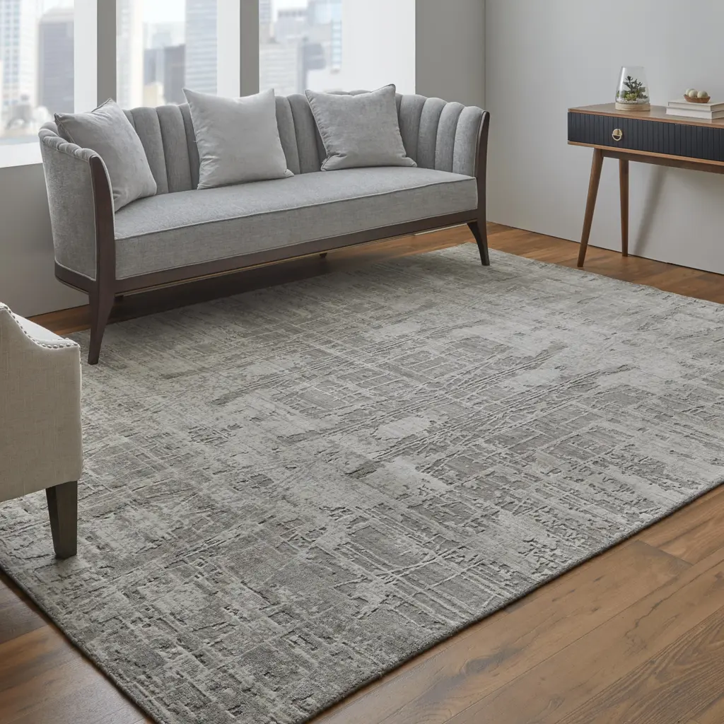 Collection: Eastfield Colors: Gray, Ivory Construction: Hand Woven Material: Face: Viscose, Wool Pile: Low Pile Pile Height: 0.39" Styles: Contemporary,Casual Backing: N/A Made In: India Thickness: 0.39" Price Range: $$$$$ (Premium)