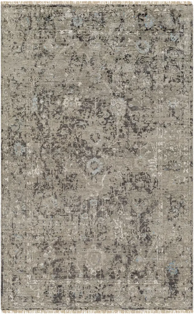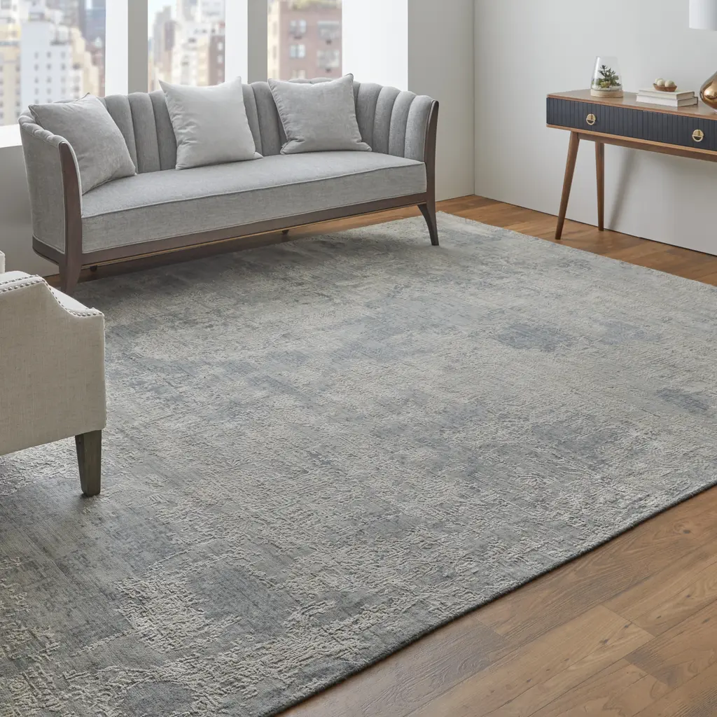 Collection: Eastfield Colors: Silver Gray, Gray Construction: Hand Woven Material: Face: Viscose, Wool Pile: Low Pile Pile Height: 0.39" Styles: Contemporary,Casual Backing: N/A Made In: India Thickness: 0.39" Price Range: $$$$$ (Premium)