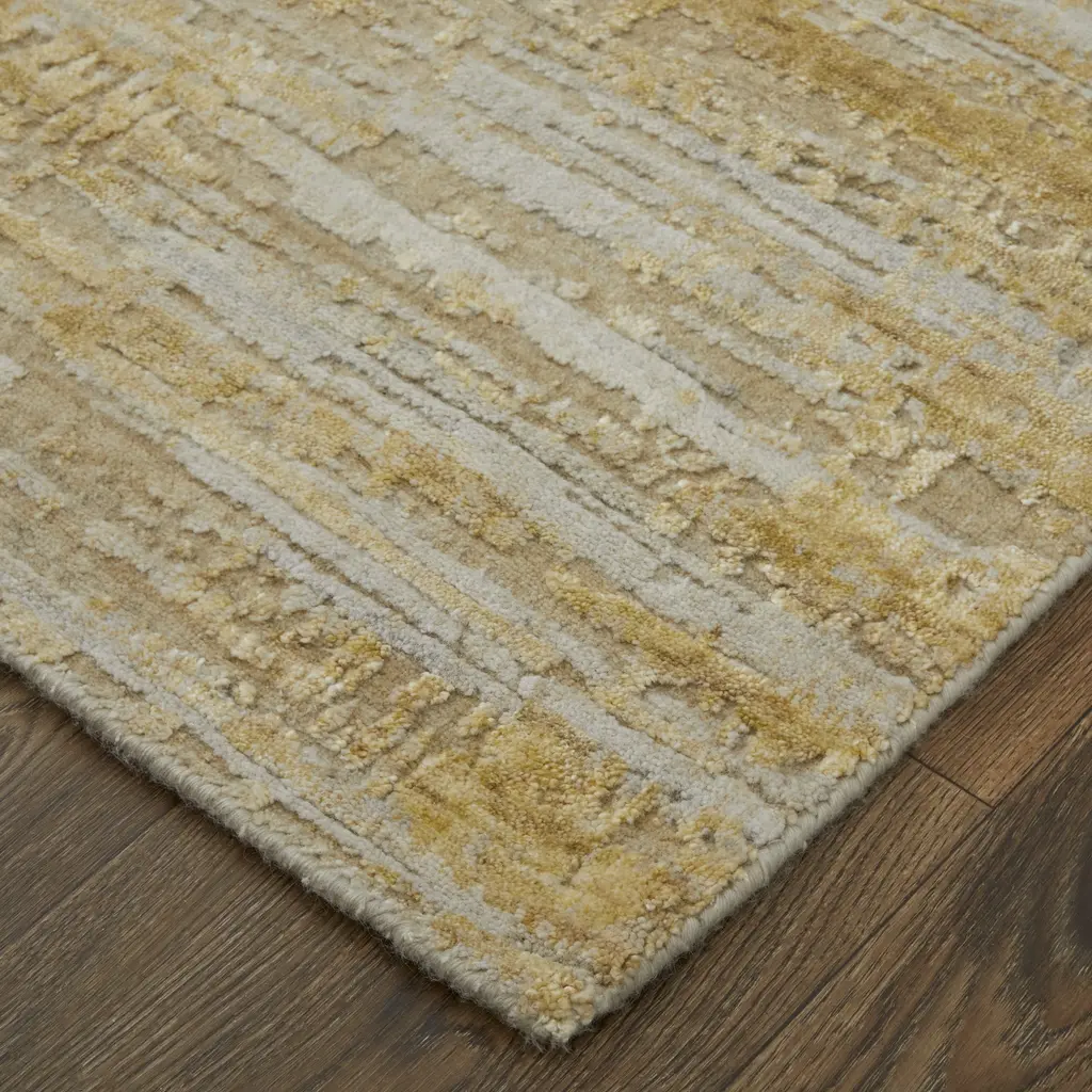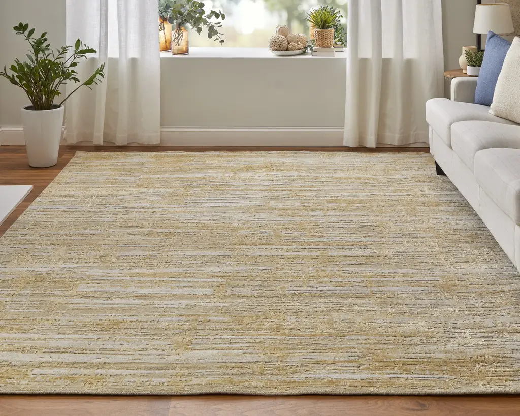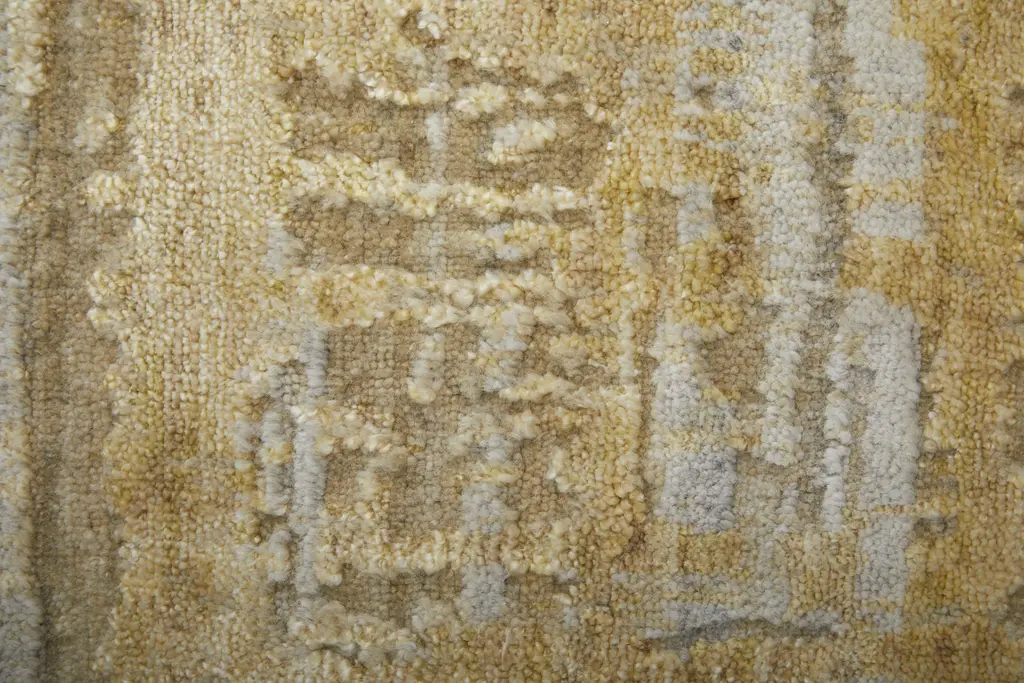 Collection: Eastfield Colors: Yellow, Ivory, Gold Construction: Hand Woven Material: Face: Viscose, Wool Pile: Low Pile Pile Height: 0.39" Styles: Contemporary Backing: N/A Made In: India Thickness: 0.39" Price Range: $$$$$ (Premium)