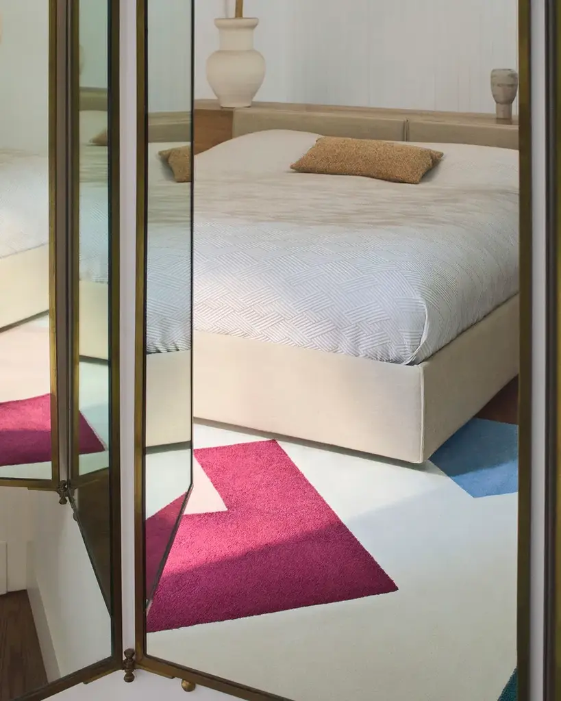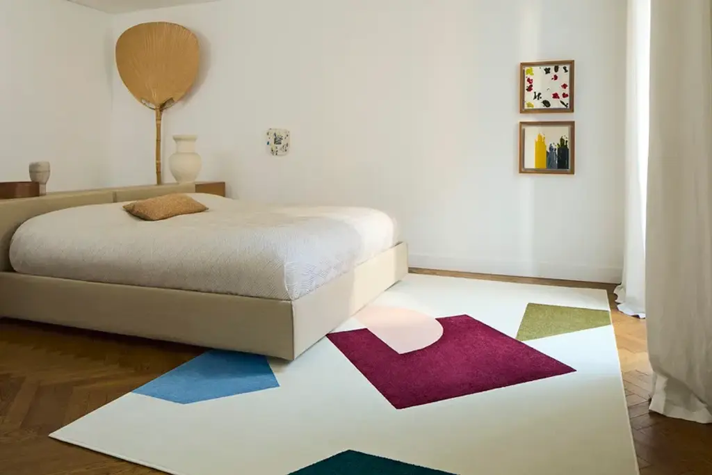 Echo is an hand mande rug.The Echo rug brings vibrant energy and character to any room. Its geometric patterns move fluidly across the surface, creating a balanced and dynamic visual effect that adds brightness and style to the space.Customisable in size and colour.