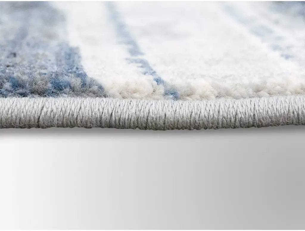 Make an artfully bold statement in your space with the Dynamic Eclipse Blue Area Rug. This contemporary-style rug is covered with bold horizontal brush strokes in blue with neutral hues. The soft touch durable pile feels wonderful underfoot. Made in Belgium of synthetic fibers for lasting beauty.