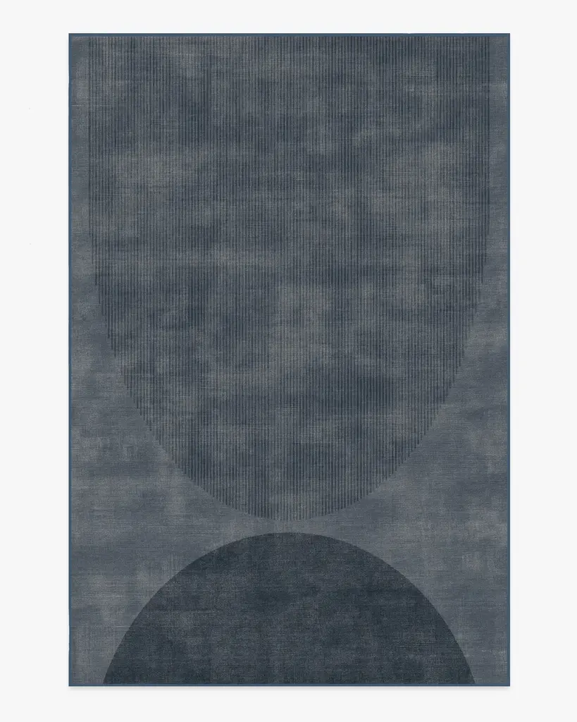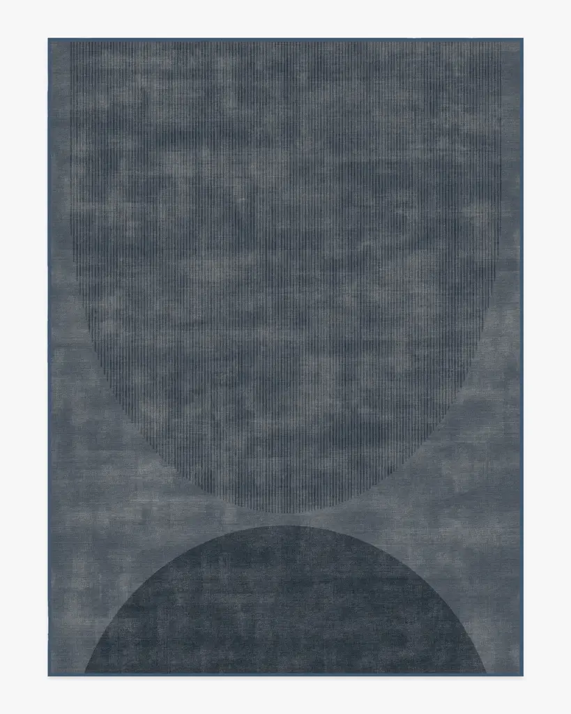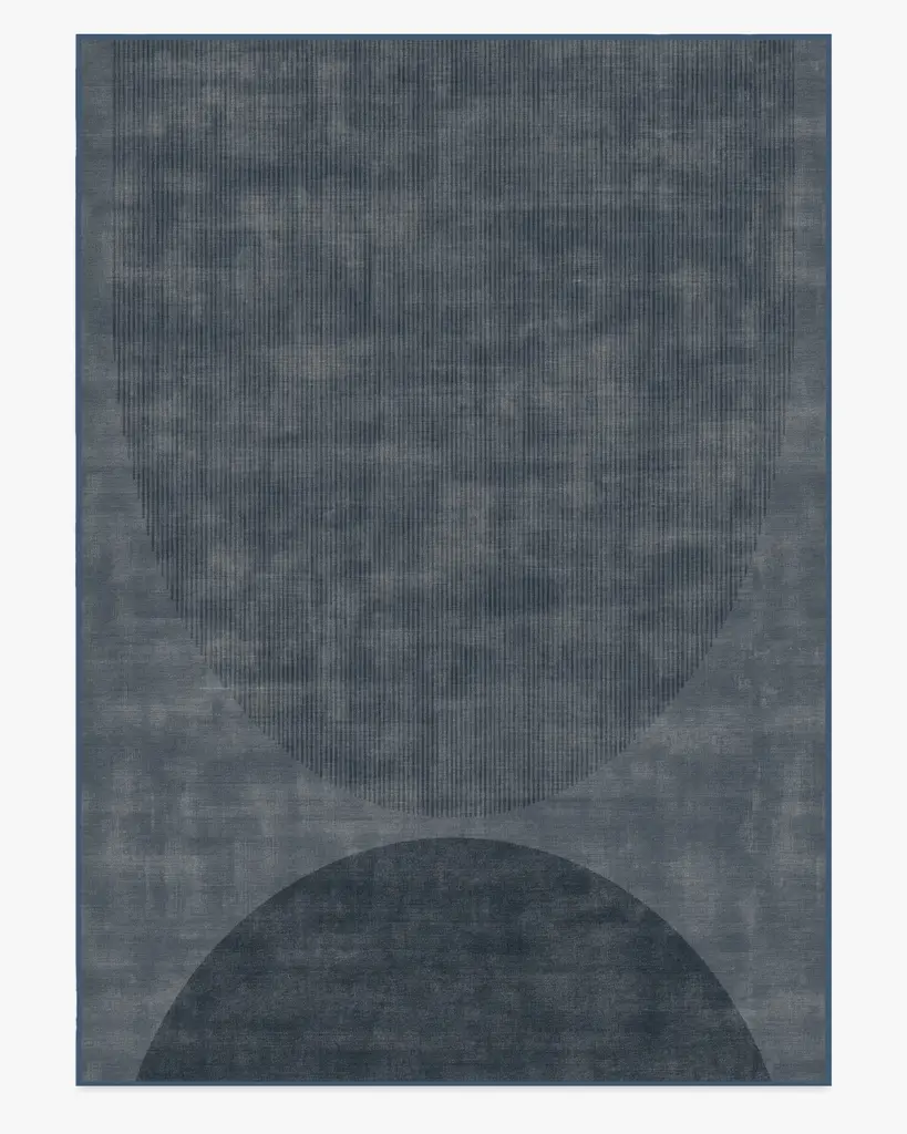 It's a total eclipse of the art. Our Eclipse Navy Rug offers a unique take on arches and the art of casting shadows, resulting in an overall modern design with distressed texture. A pair of circular shapes in varying deep navy hues come together to create subtle layers of dimension and variation. Water-resistant, stain-resistant, and machine-washable. Rug colors may vary slightly according to your device and the lighting in your space.